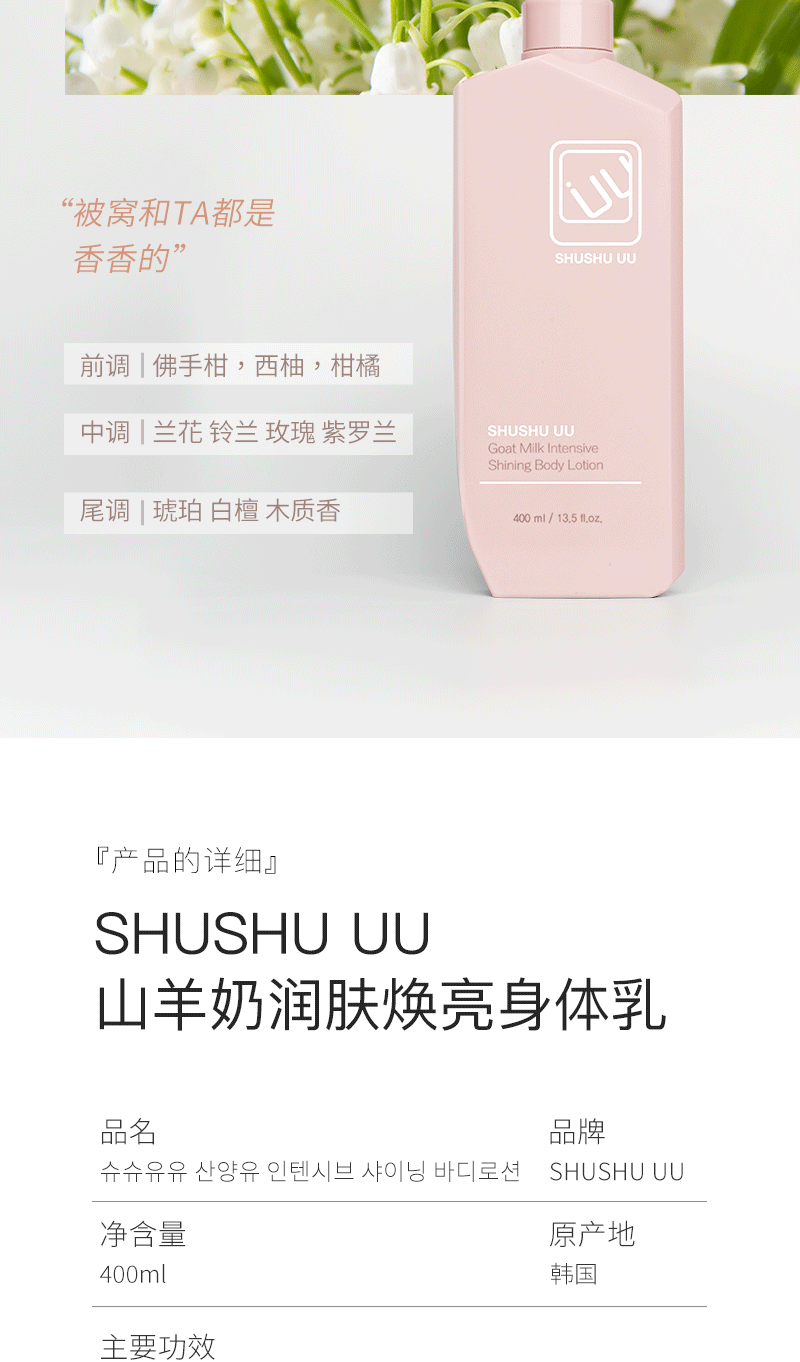 SHUSHU UU山羊奶润肤焕亮身体乳400ml