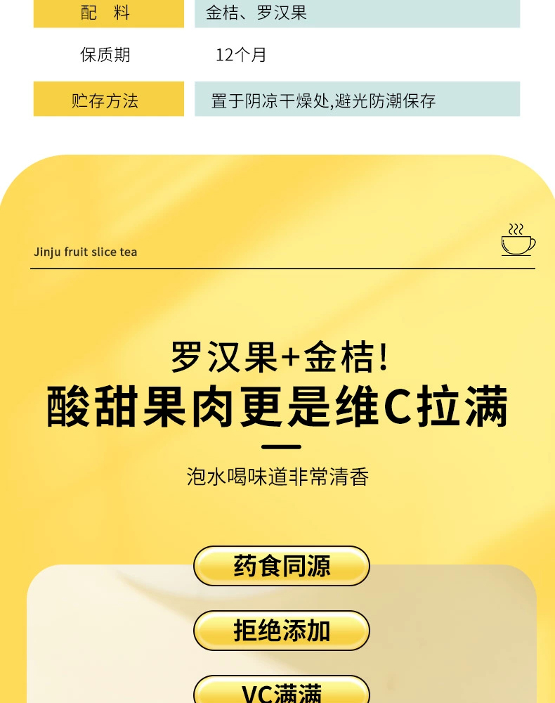 【皇佳香-青云好食城】金桔罗汉茶3g*10杯 润喉养生果味茶饮