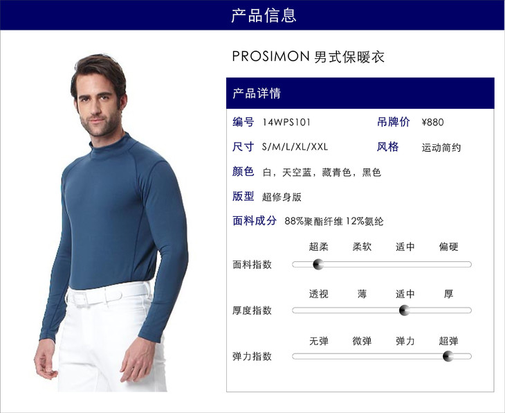 PROSIMON高尔夫服饰,旗下有高尔夫运动系列、好动衬衫系列、色彩选制系列丰富的商品线。