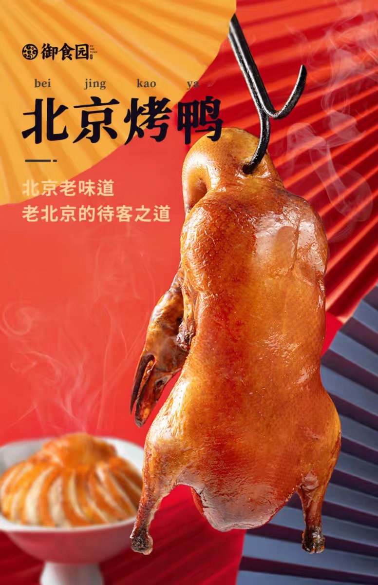 往来礼局 老北京烤鸭整只1000g+烤鸭酱120g 熟食