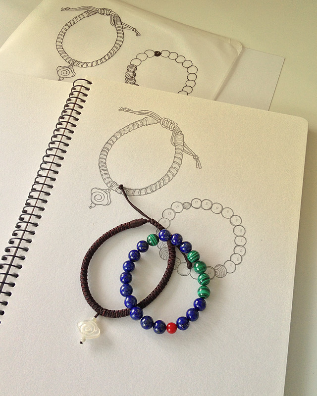 【辰时】选取来自阿富汗的纯天然青金石,属于老坑矿藏,大约花了半年才盘下来一些,只因青金石价钱不断提升(很多顶级青金石一条就要数千),而且只敢从相熟的客户那里慢慢挑选一些深蓝色少白少金的珠子(淡蓝色和出现很多白色方解石痕迹属于品质较低的品种、而蓝得仿佛没有瑕疵也值得存疑的),已是中上档次的宝石。