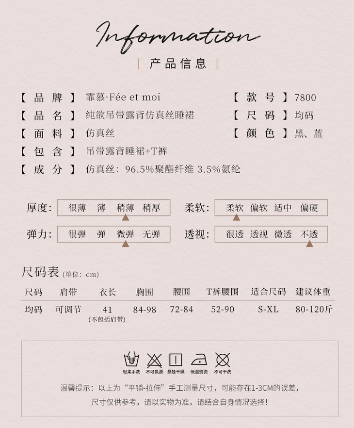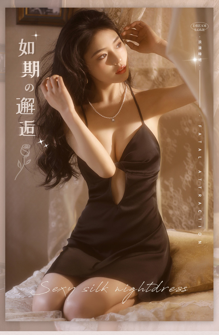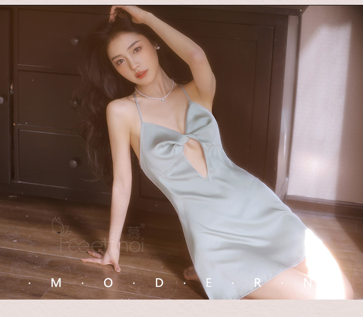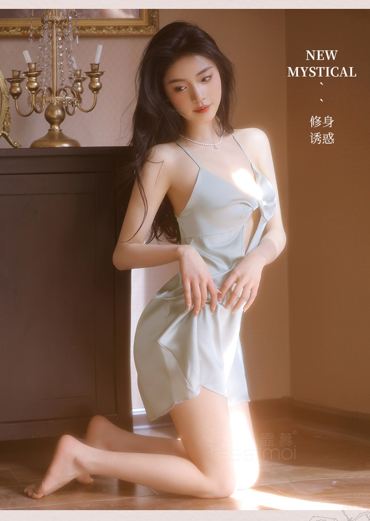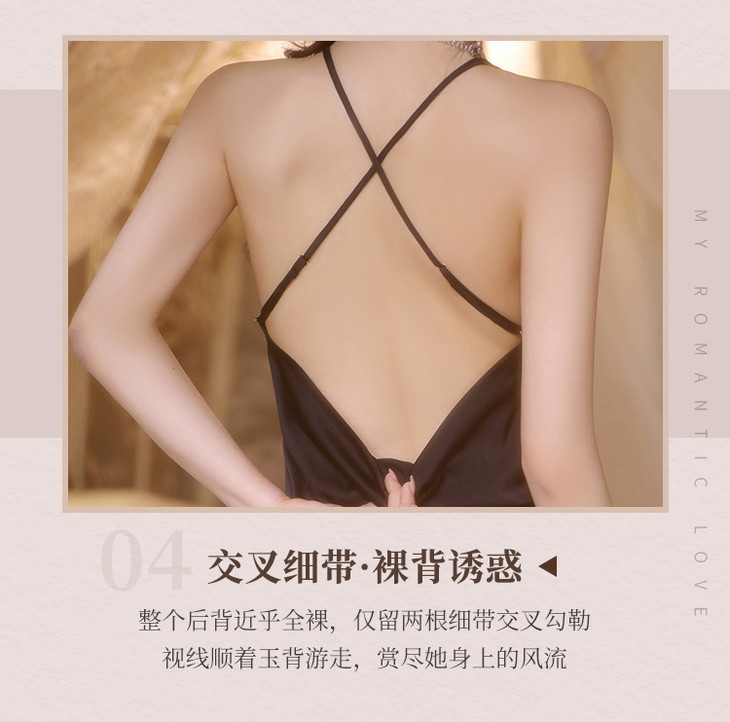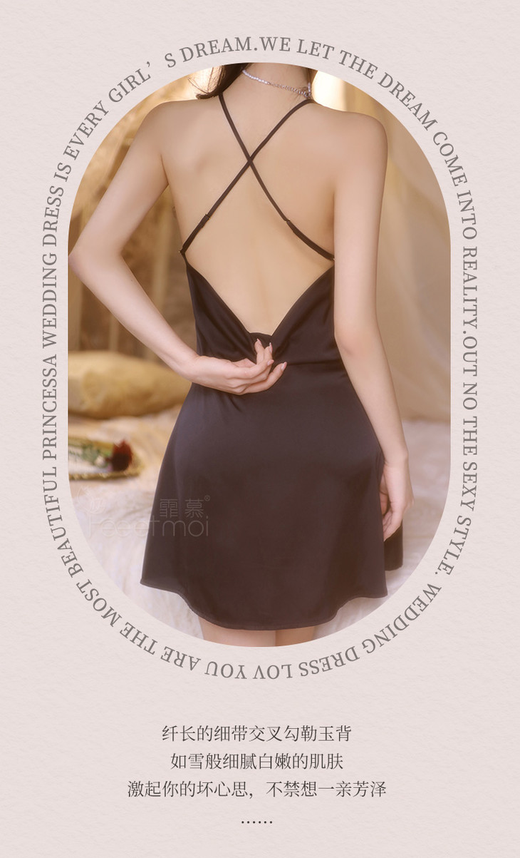 热销内衣 纯欲吊带露背仿真丝睡裙 号FMD7800