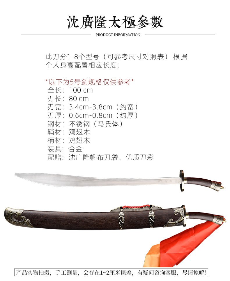 新三皇太极刀 标准武术太极刀单刀 沈广隆剑铺 龙泉太极刀 sgl-9005 未开刃