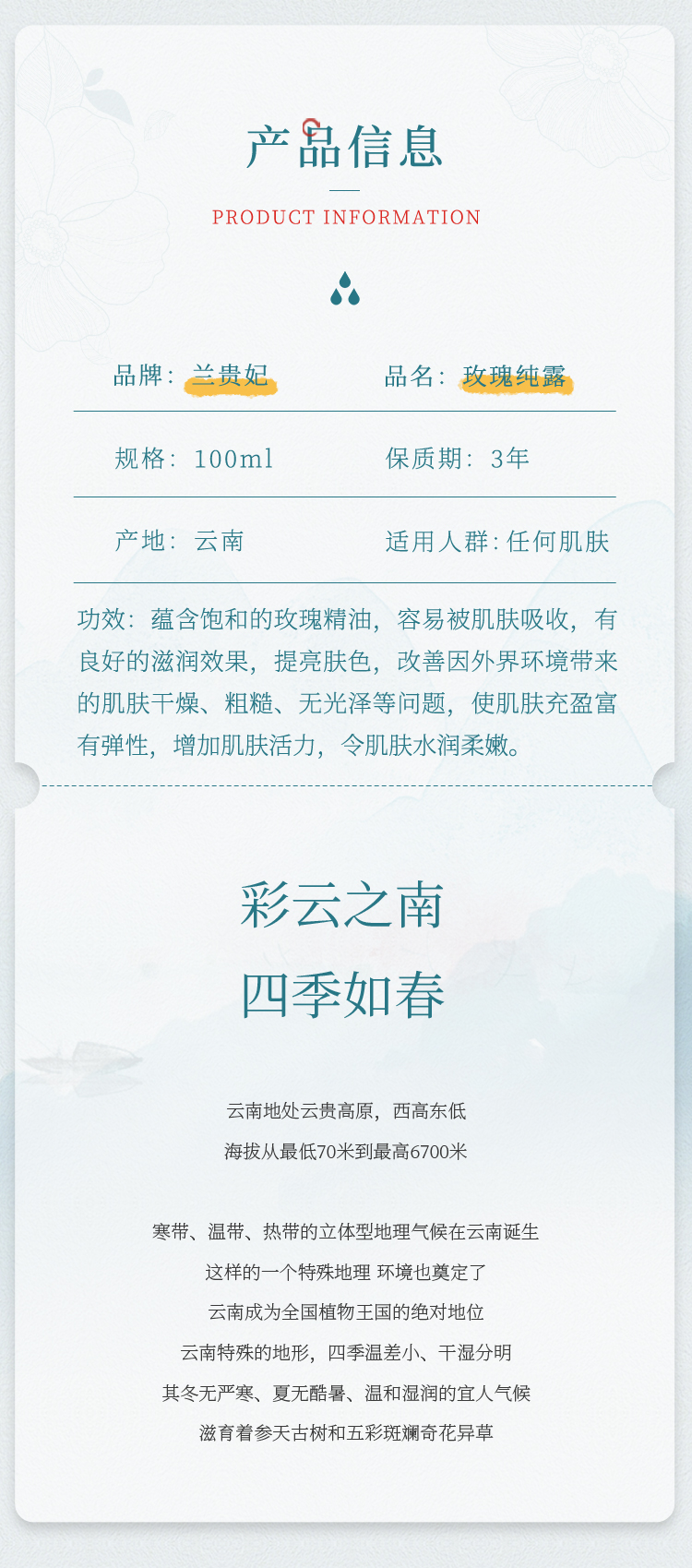 兰贵妃玫瑰花漾水100ml