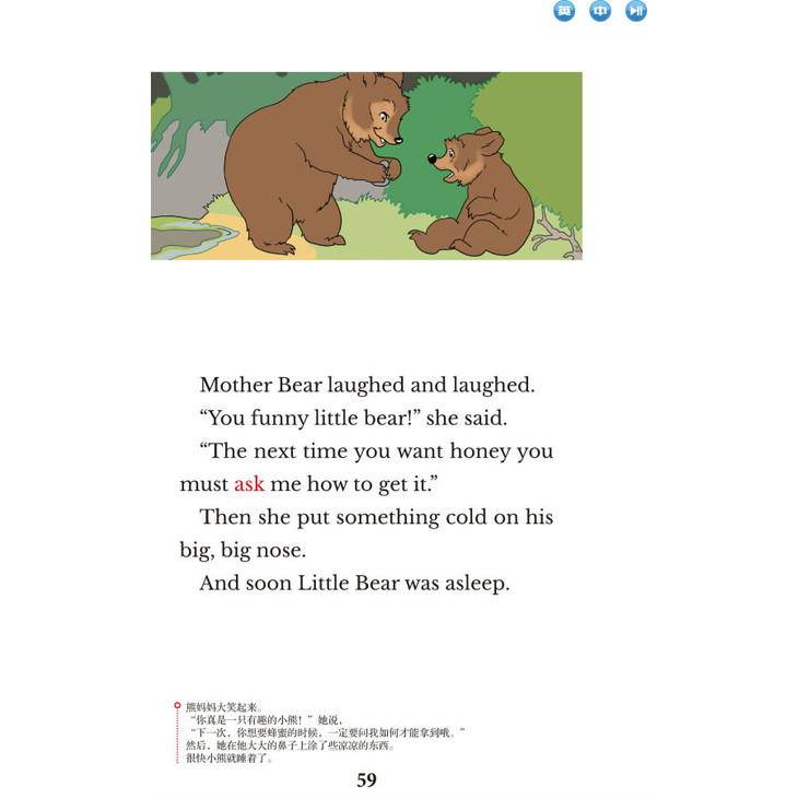 另外,为使读者充分利用《美国小学英语》,除了美音朗读,我们还开发了文本点读功能和在线微课程(《美国幼儿英语》另有开发)。详情请见“微课使用说明”与“点读说明”。