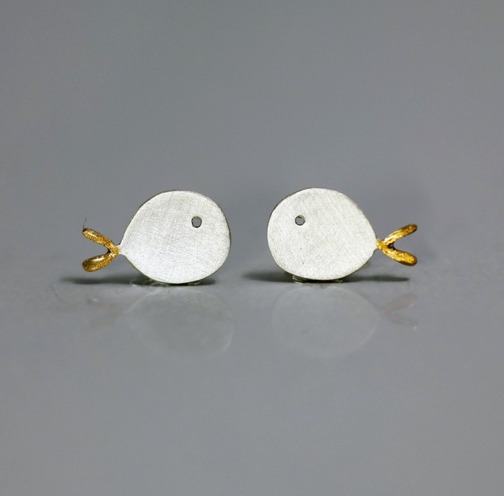 北京仓|Kiss the Frog-呆萌鱼情侣 耳钉[希腊设计师]