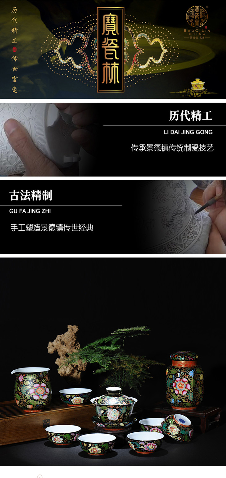 【宝瓷林】黑地珐琅彩9头茶具套组