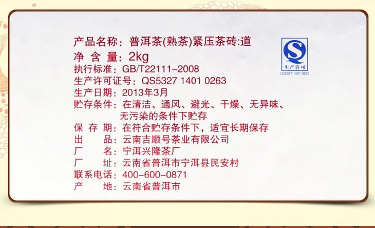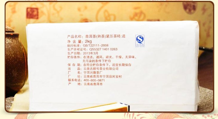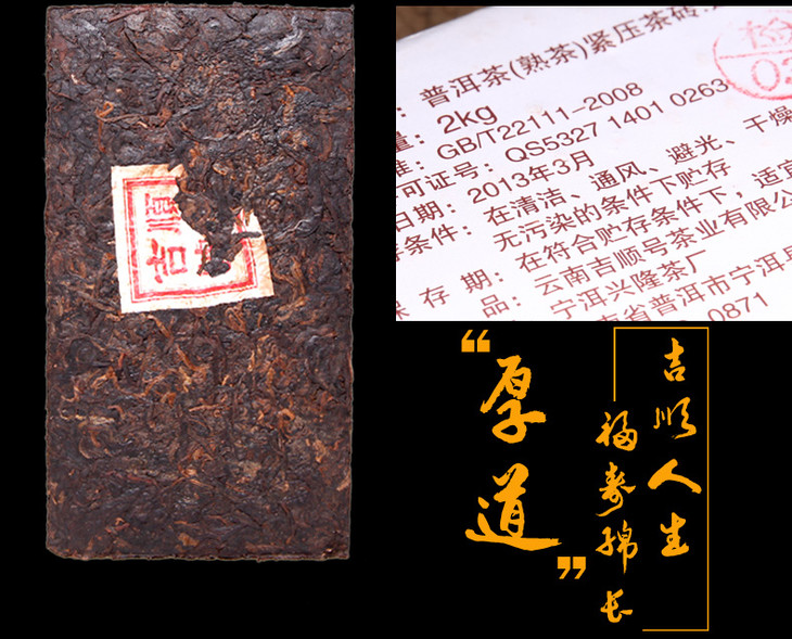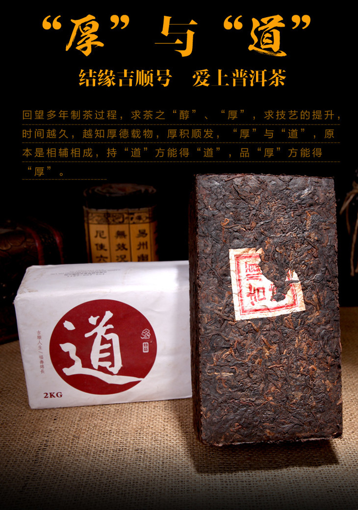 厚道做人地道做茶 吉顺号普洱厚道熟砖茶2000g大砖 包邮