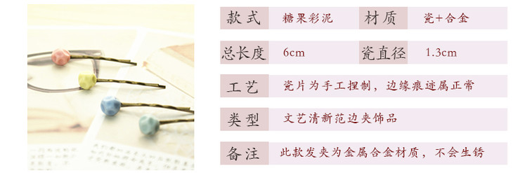 【为思礼】文艺清新 发夹 边夹 文艺礼盒 手工陶瓷 发夹饰品 创意饰品礼物