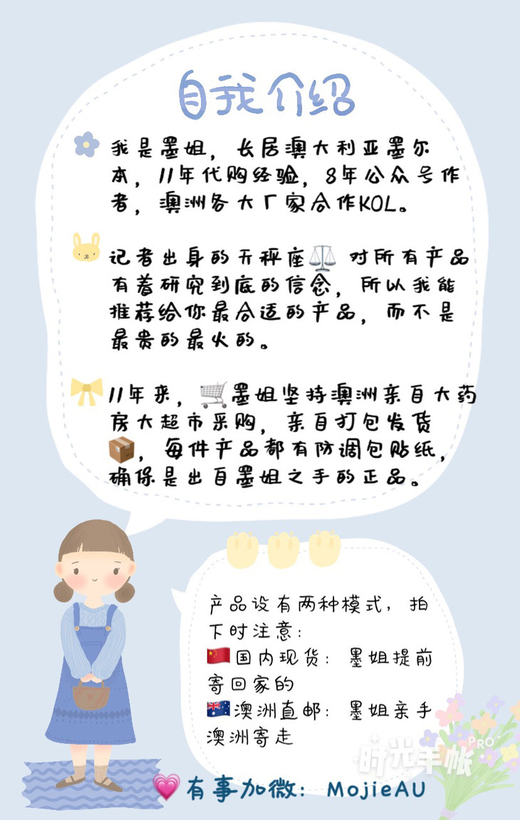 - ◡̈⃝ྃ 我是墨姐:长居澳洲15年代购,12年原创公众号作者。 100%正品保证,全部澳洲自己采购+发货,正品看得见😄