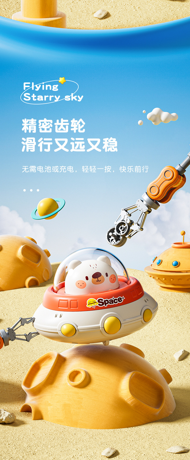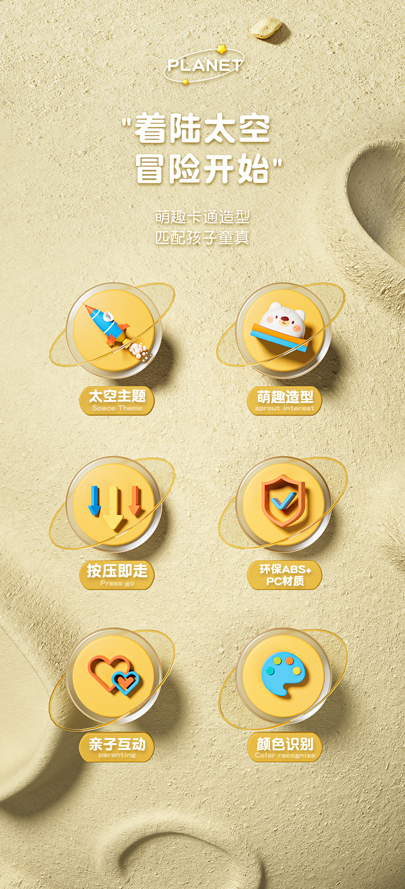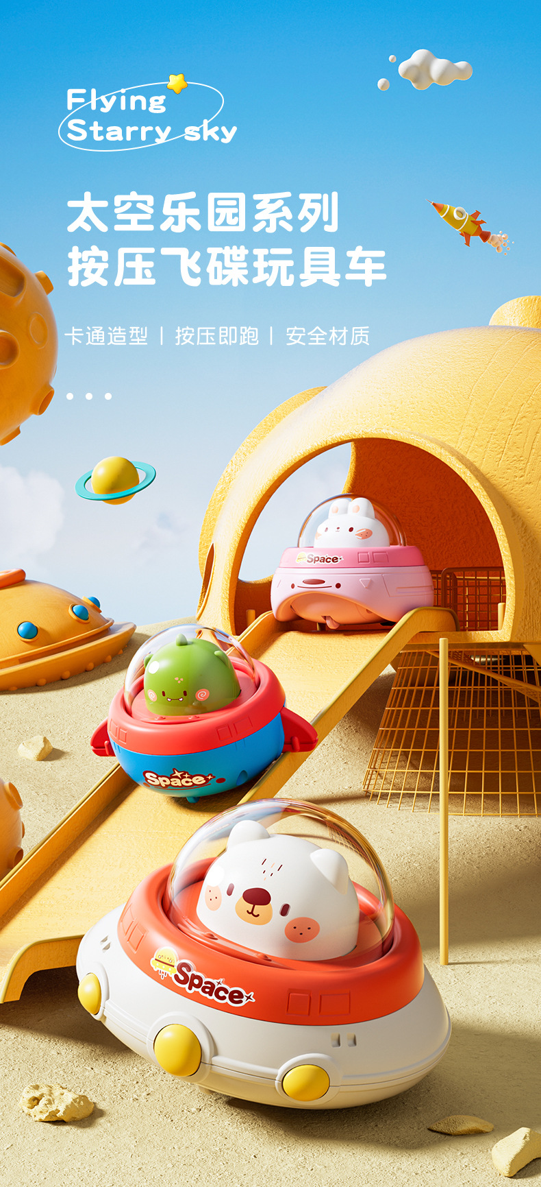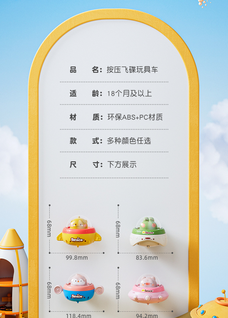 【萌趣太空主题 按压即跑】按压飞碟玩具车儿童小汽车惯性回力车男孩子小玩具