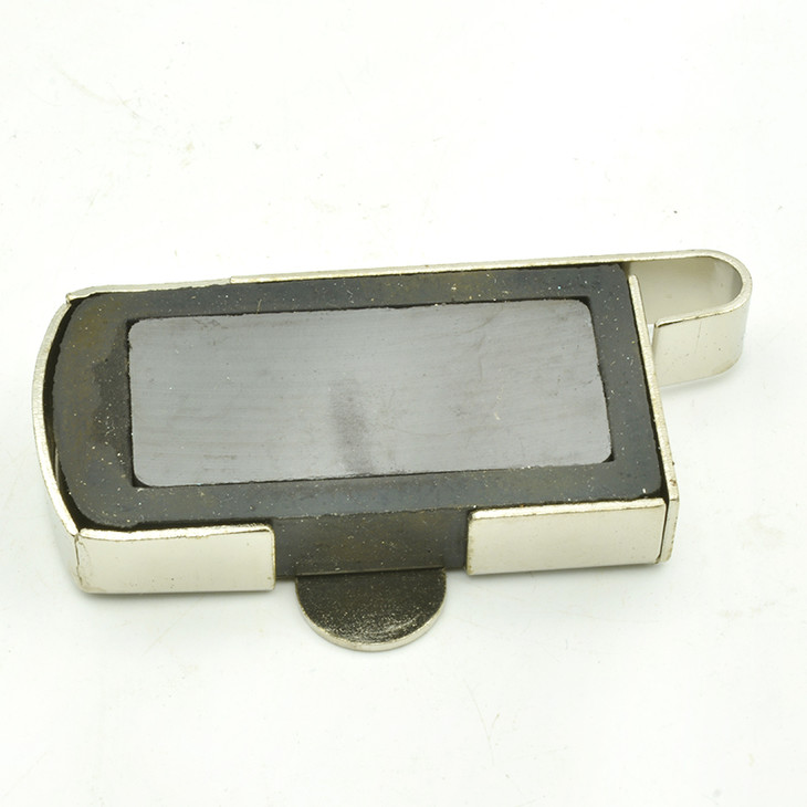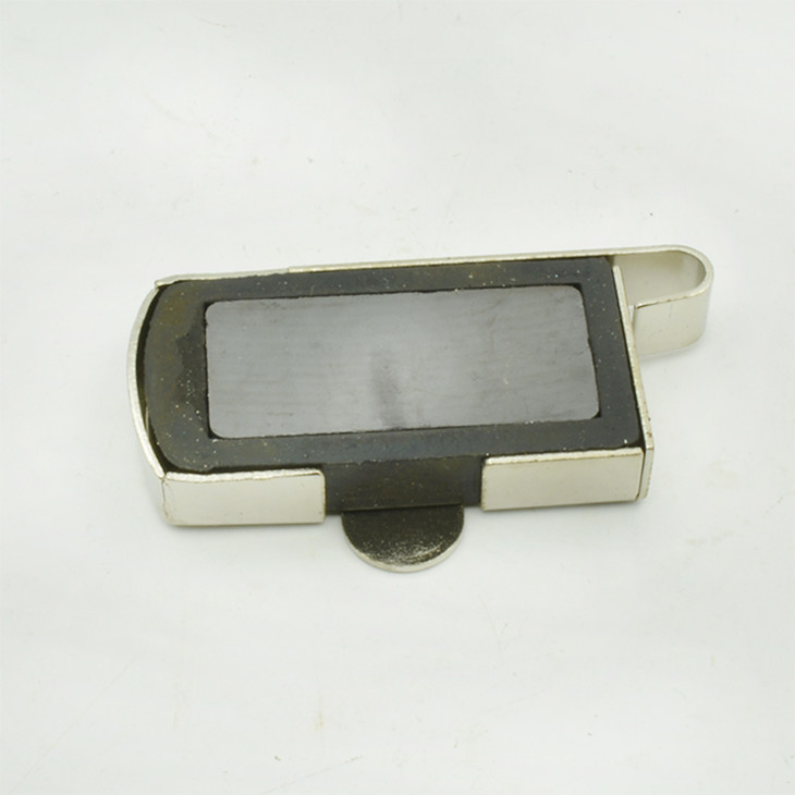 2.将“定位规块”靠在料边上,放在缝纫机上规块下面有一个磁铁,牢固的吸在缝纫机上,放好后,开始缝纫,缝纫过程中,料边会靠在规块的挡边上自动修正线迹;