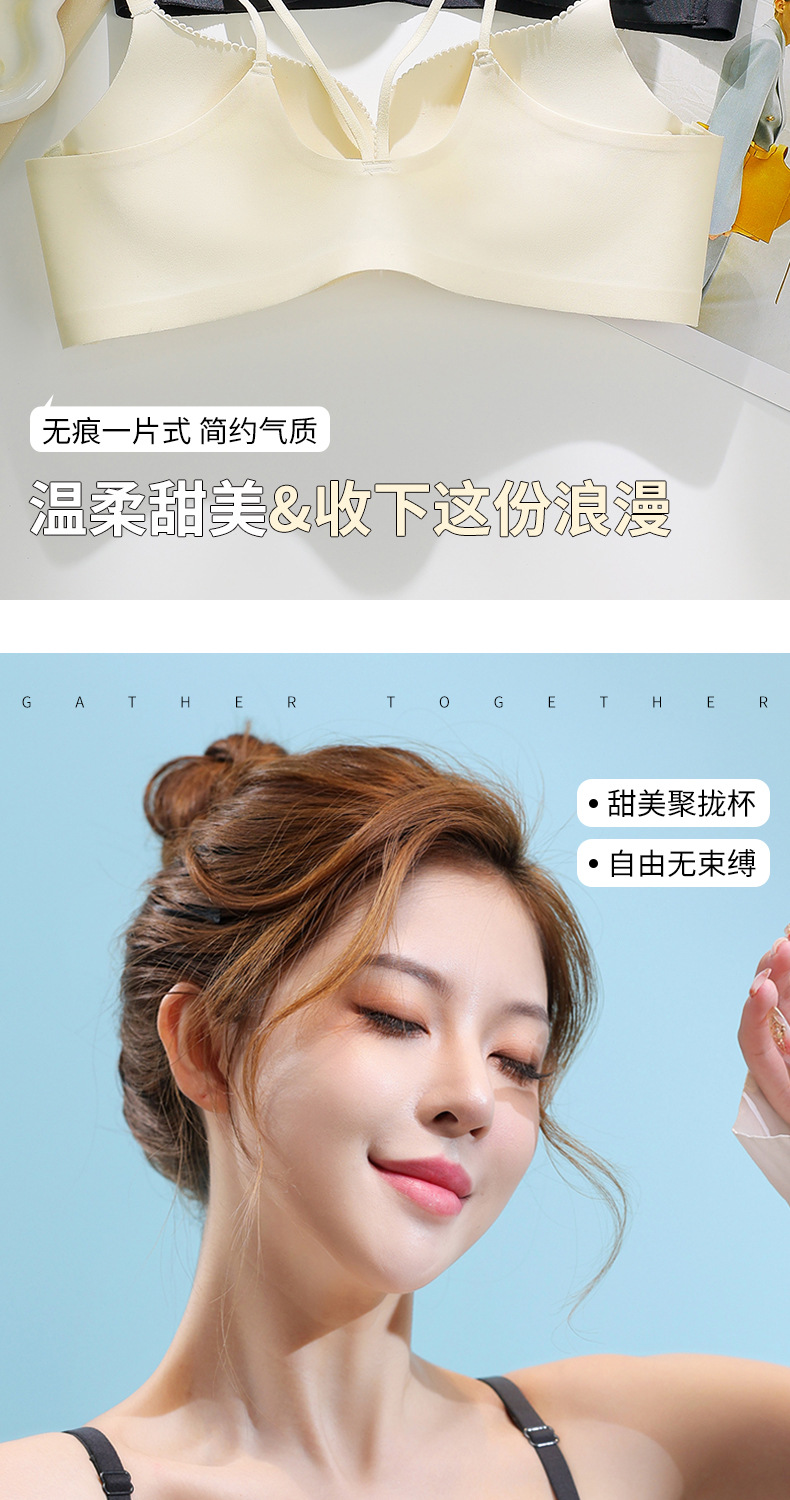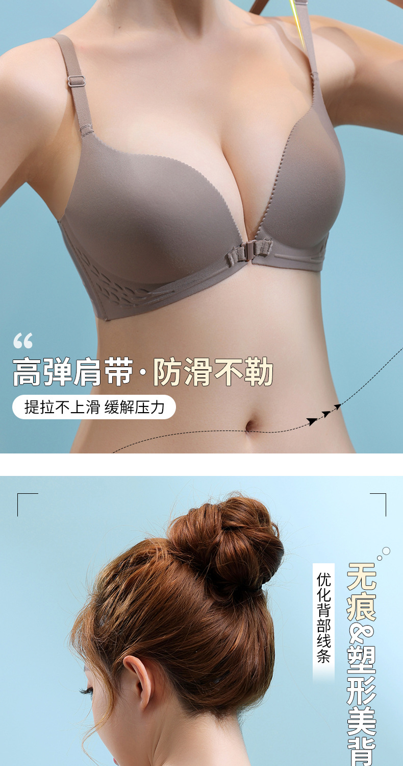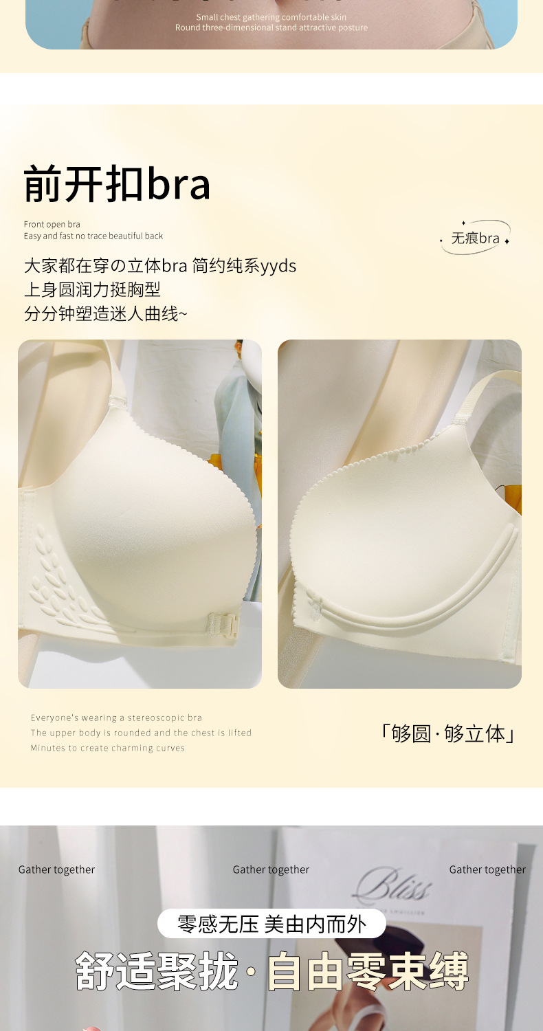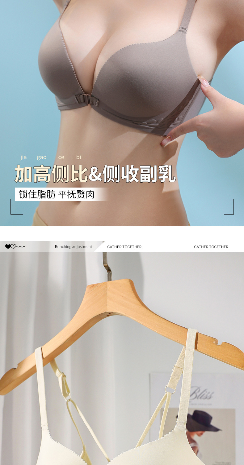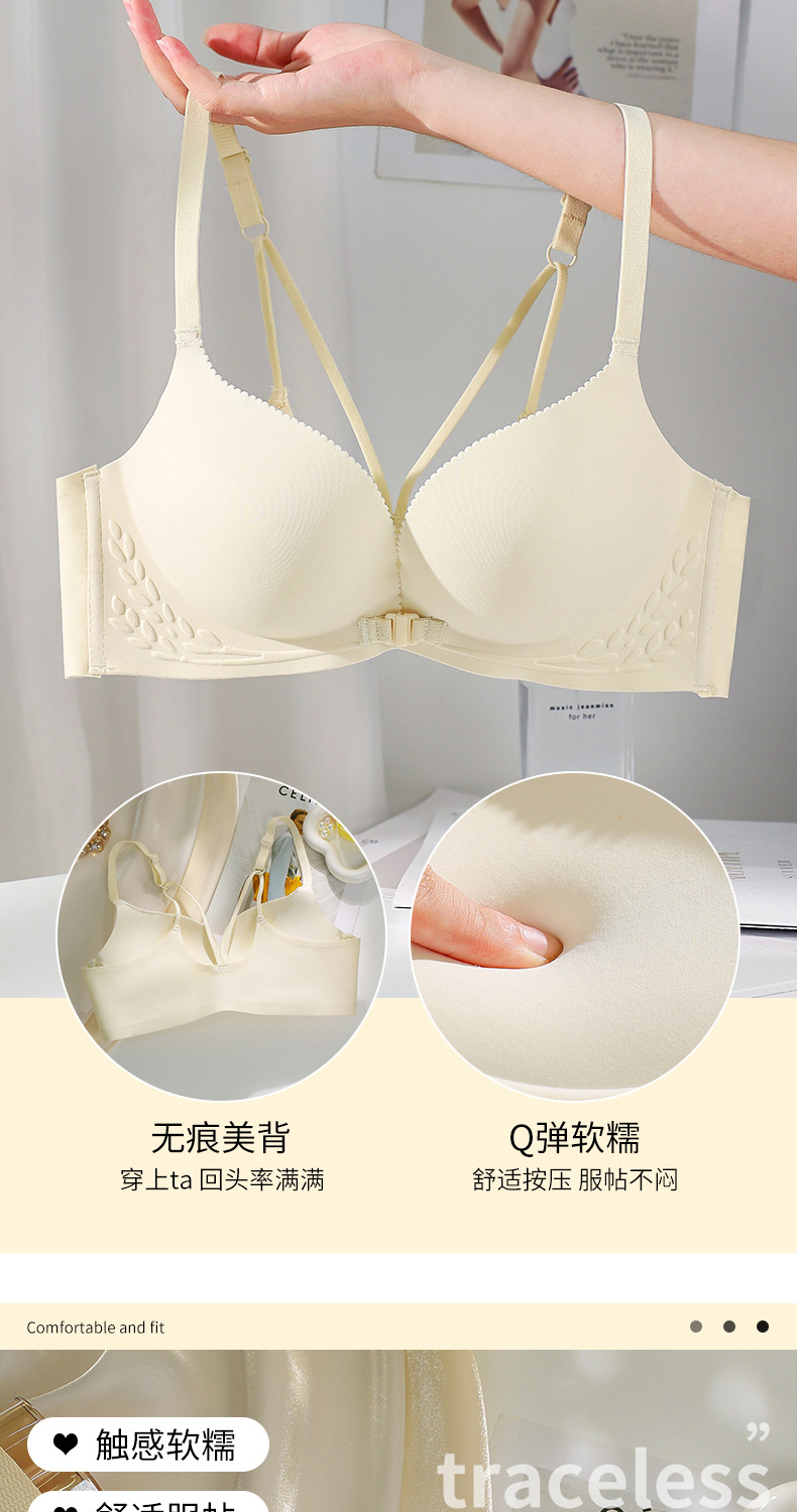 【前扣bra聚出蜜桃胸 无痕美背舒适服帖 】小胸显大前扣聚拢内衣女无钢圈上托防下垂收副乳美背文胸罩