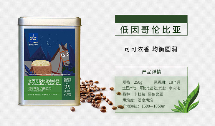 金米兰低因哥伦比亚咖啡豆 250g/罐 精选原产地咖啡系列 默认发咖啡豆 需要代磨粉请备注