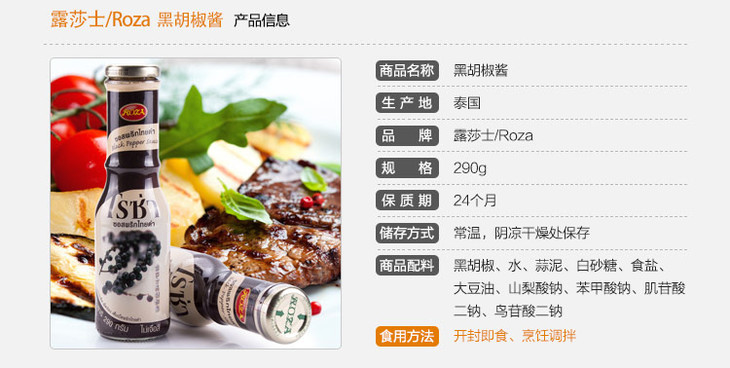 泰国进口露莎士 黑胡椒酱 290g/瓶