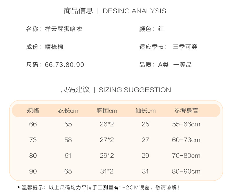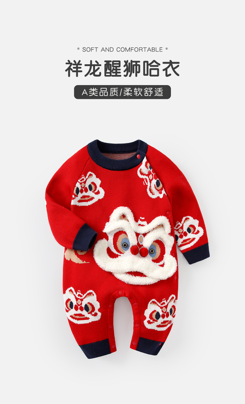 【祥龙醒狮拜年服】婴儿拜年服冬装龙年男宝宝加绒满月百天连体衣新生儿新年喜庆衣服