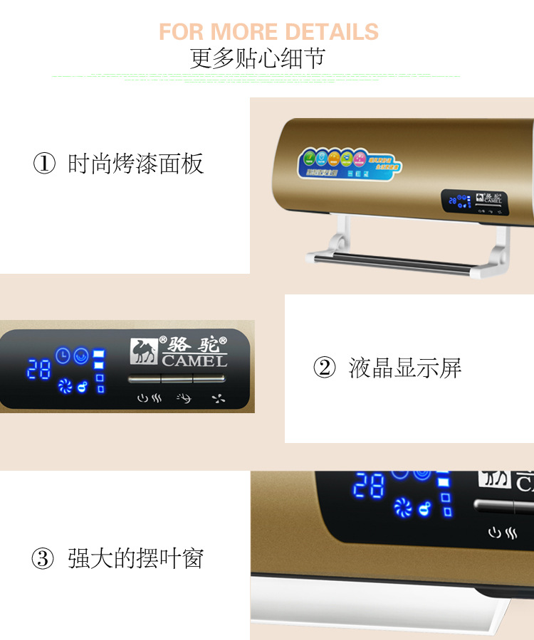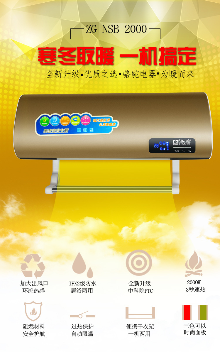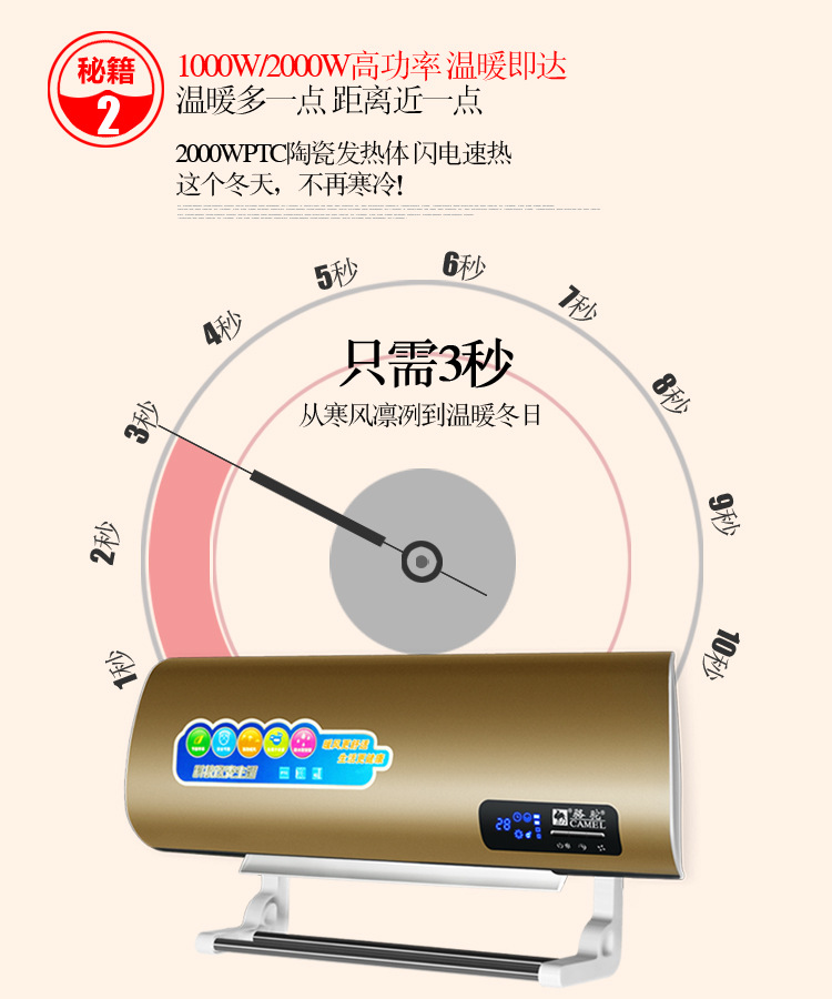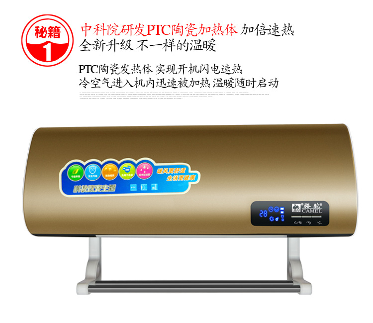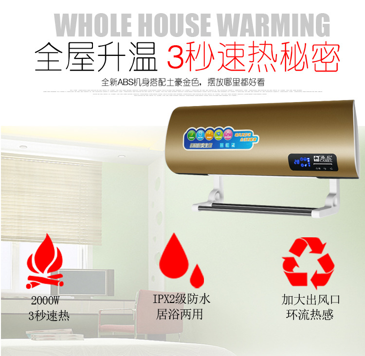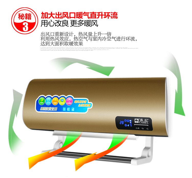 骆驼取暖器 家用暖风机 挂壁遥控电暖气壁挂浴室移动冷暖小空调扇
