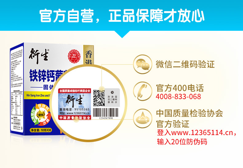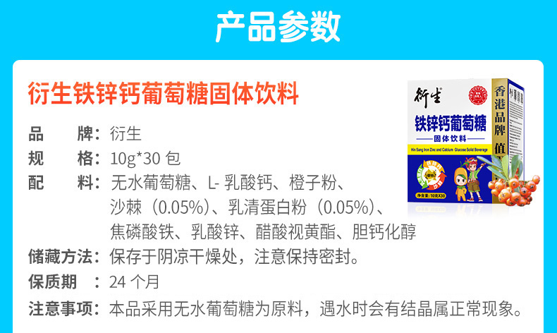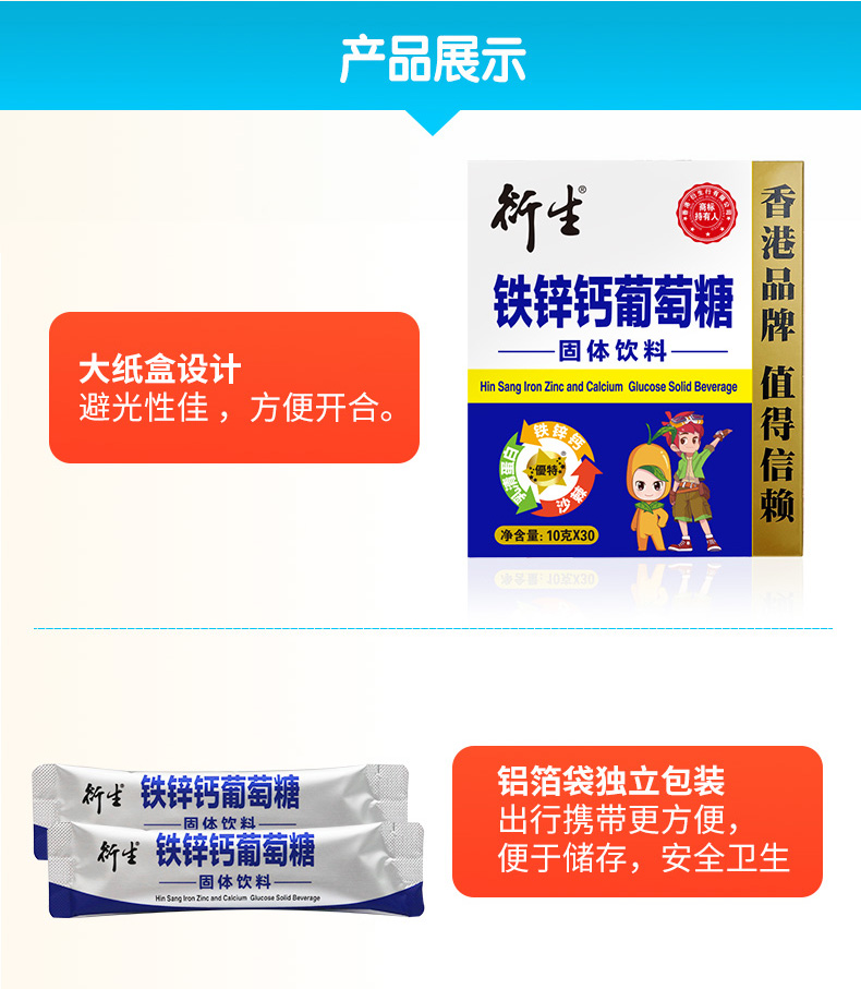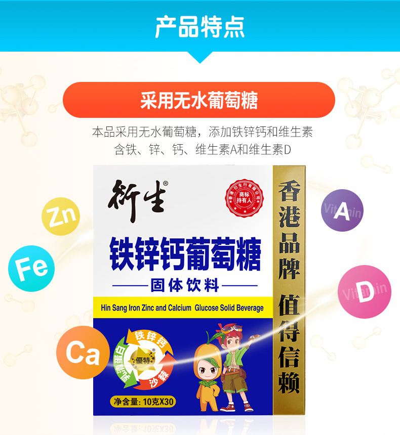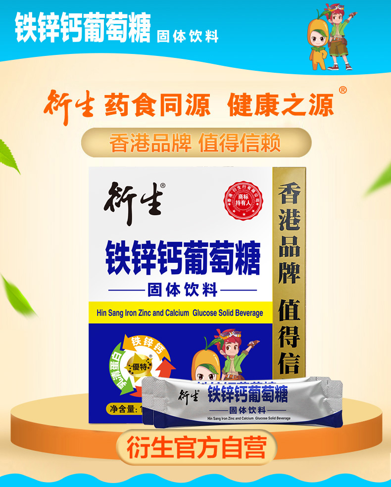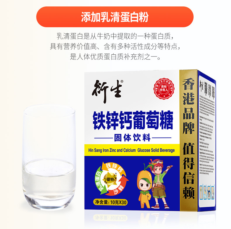 【买1赠1】香港衍生铁锌钙葡萄糖固体饮料(10克*30条/盒)