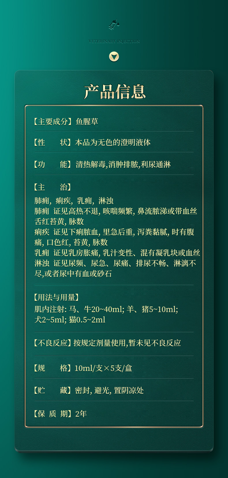 鱼腥草注射液10mlX5支 主治肺炎 痢疾 淋浊
