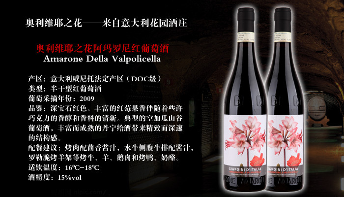 这个产区最独特的葡萄酒,采用古老的传统方法酿造,首先将精选的葡萄放在麦秆上或悬挂在通风的房间里面风干,得到糖度更加浓缩,以及获得更多特殊风味的干葡萄。完全发酵后得到高酒精浓度、口感馥郁浓厚的干型葡萄酒,称为阿玛罗尼(Amarone)。