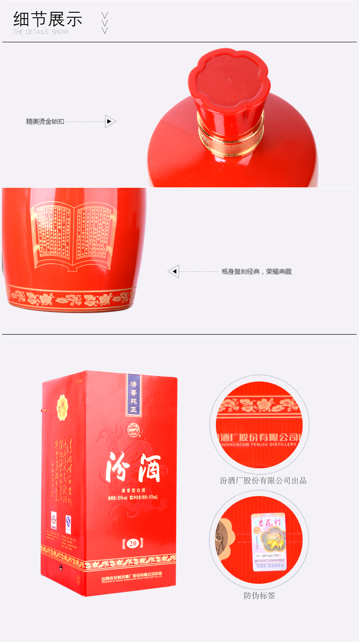 山西汾酒杏花村酒 20年红色纪念版 汾酒53度475mL 婚庆清香型白酒 顺丰/EMS航空包邮 送赠品 商品图4