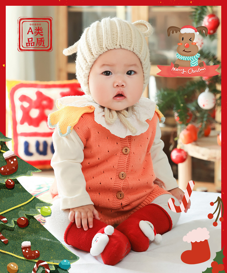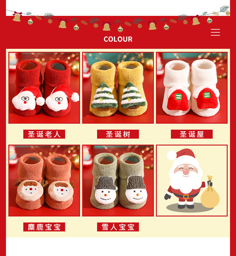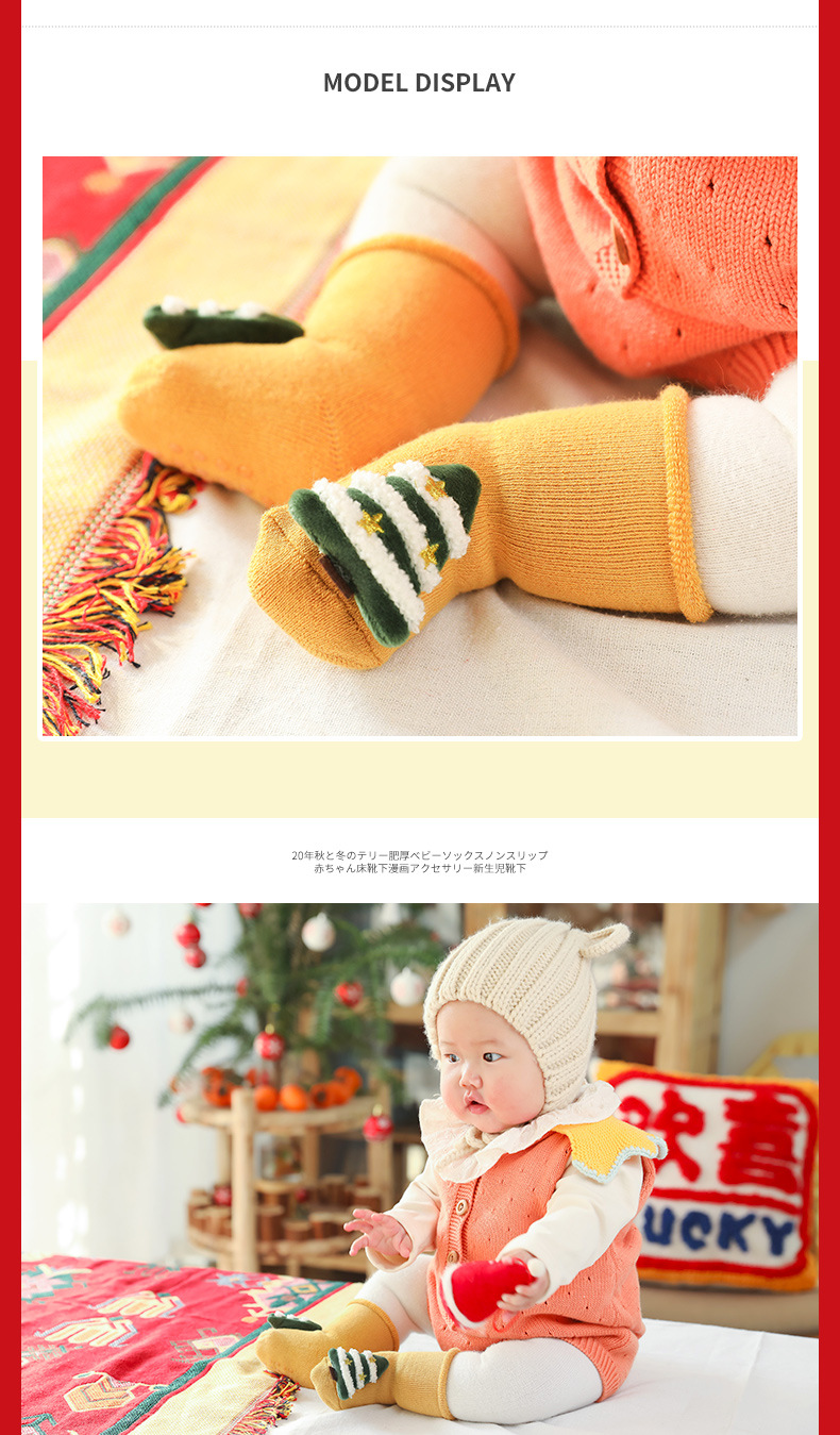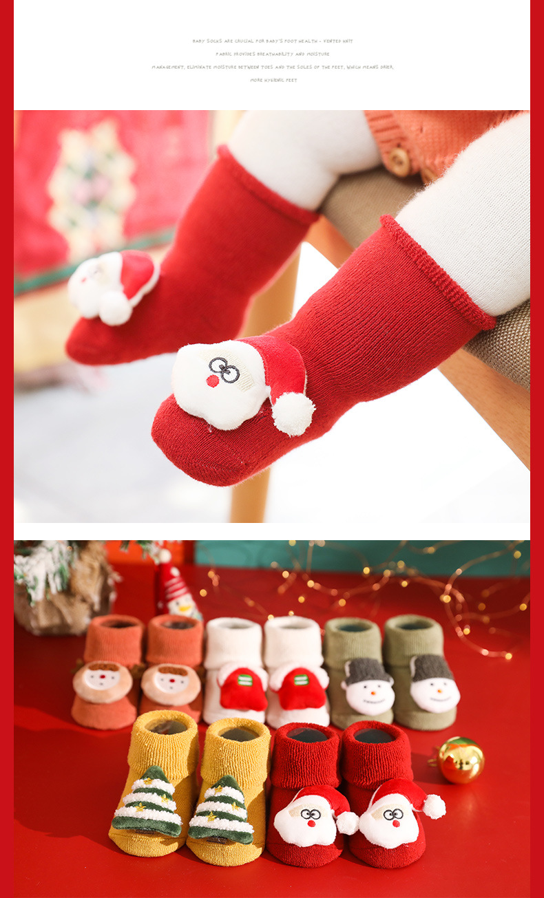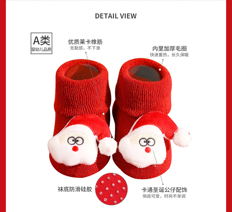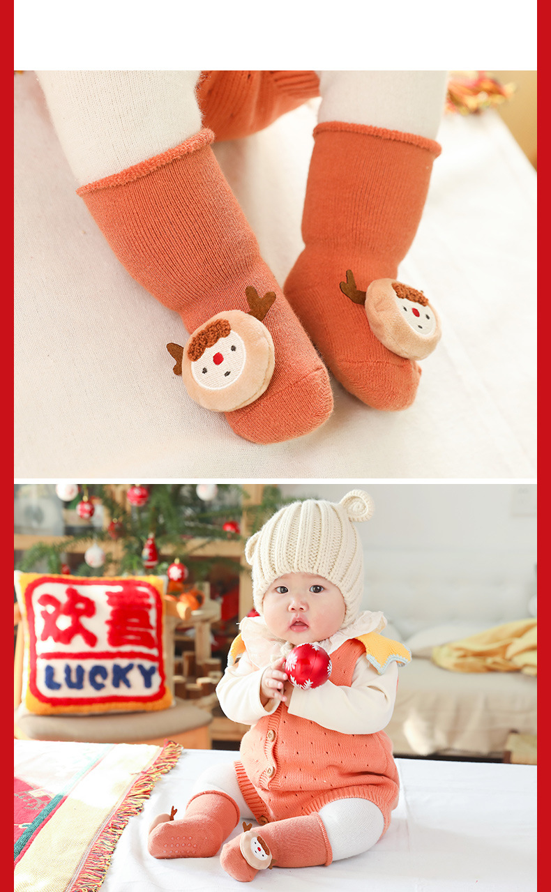 【2双装】秋冬毛圈加厚婴儿袜子防滑宝宝地板袜儿童圣诞袜新生儿卡通公仔