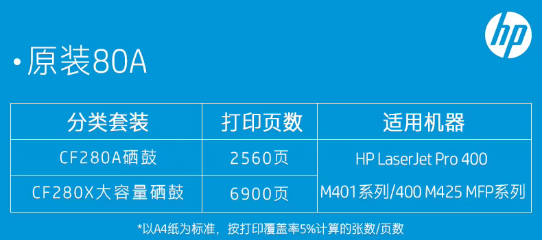 惠普(HP)原装80A硒鼓CF280A硒鼓适用M401d M401dn M425dn M425dw打印机粉盒 CF280X