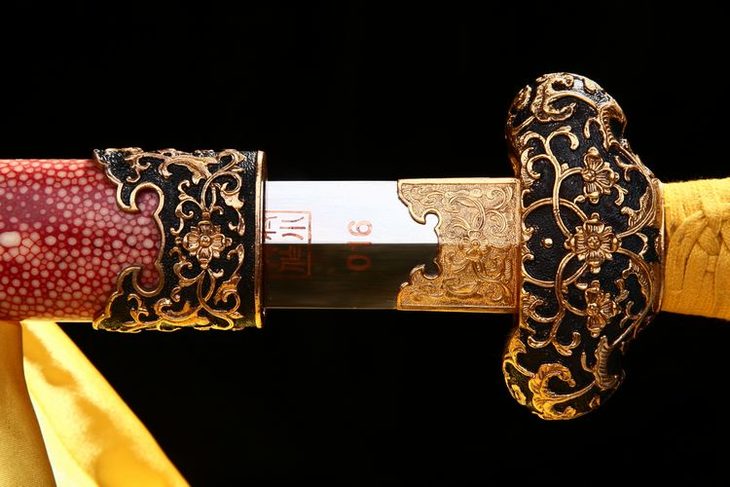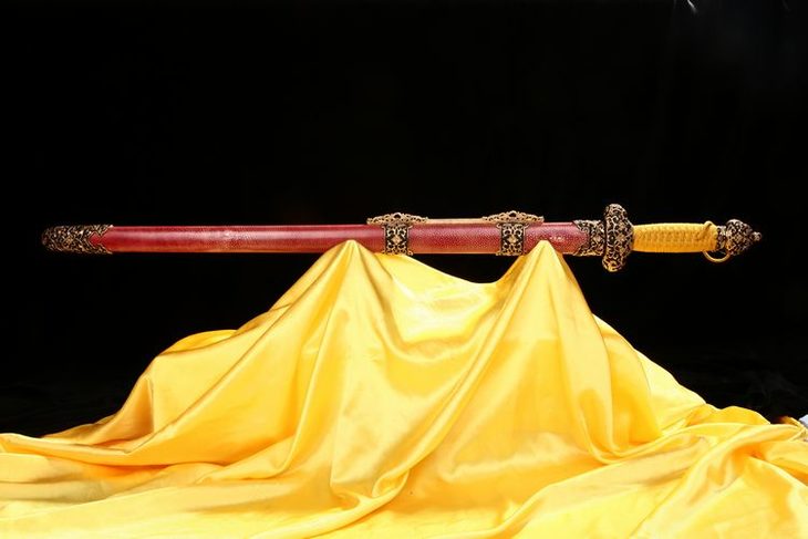 蒋氏 龙泉刀剑 红鲨鱼皮贯霄剑-蒋小龙大师年度力作未开刃