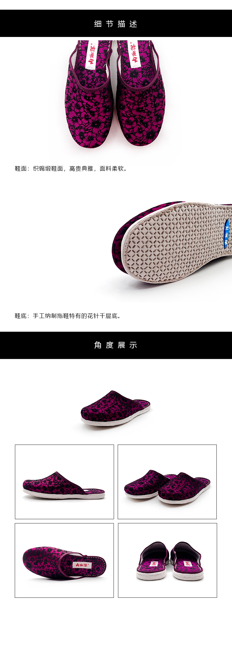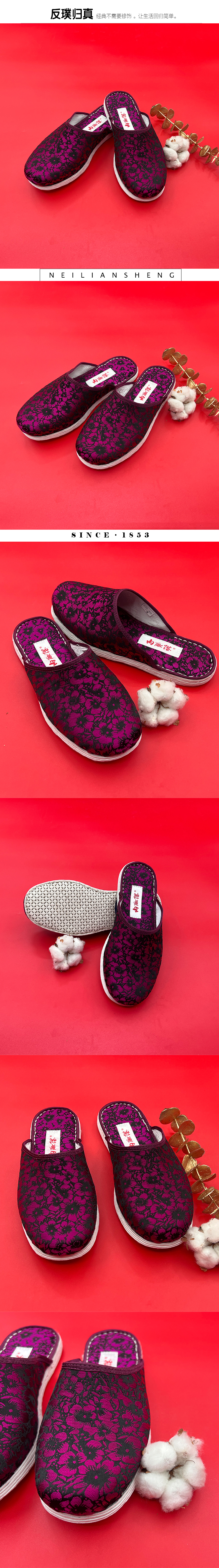 内联升女鞋手工室内拖鞋千层底织锦舒适拖鞋2006C