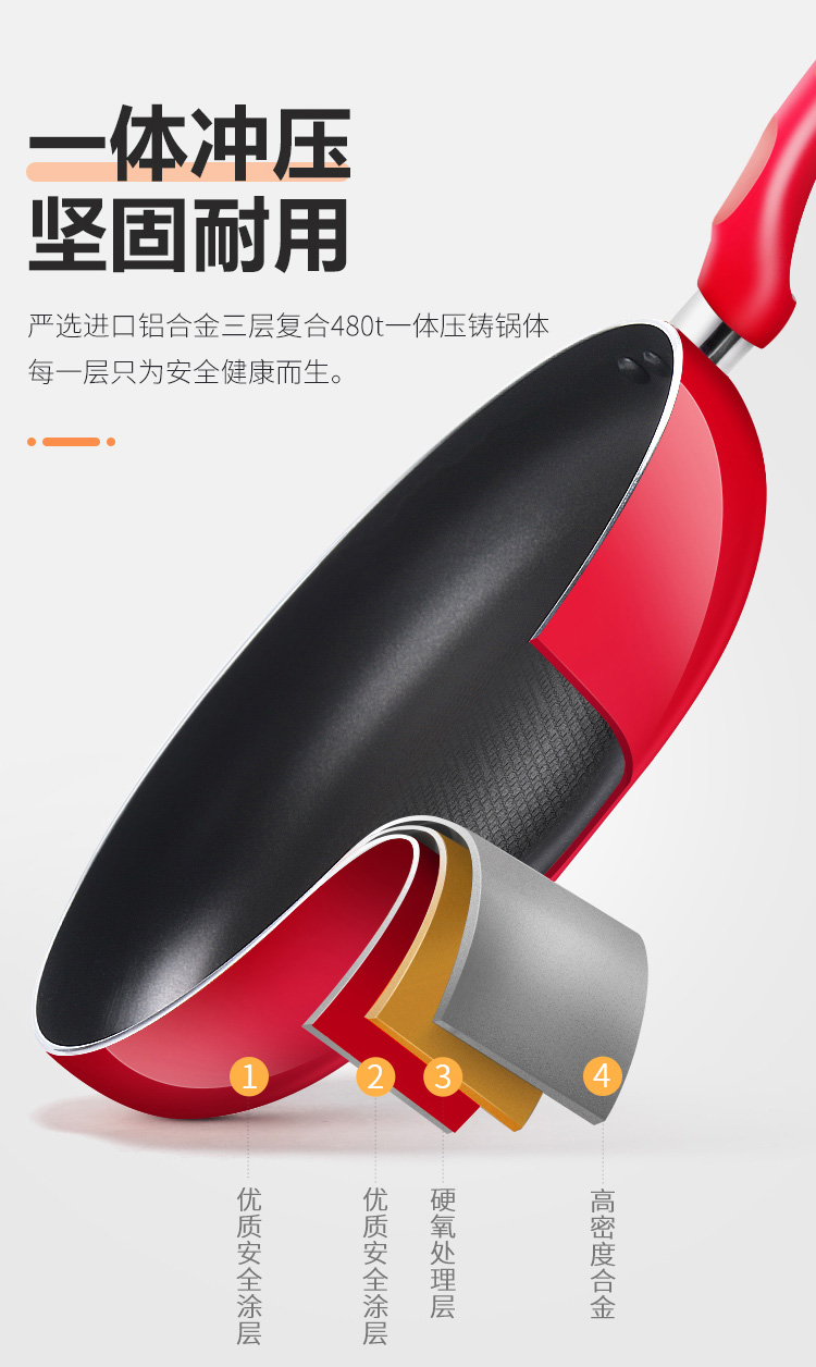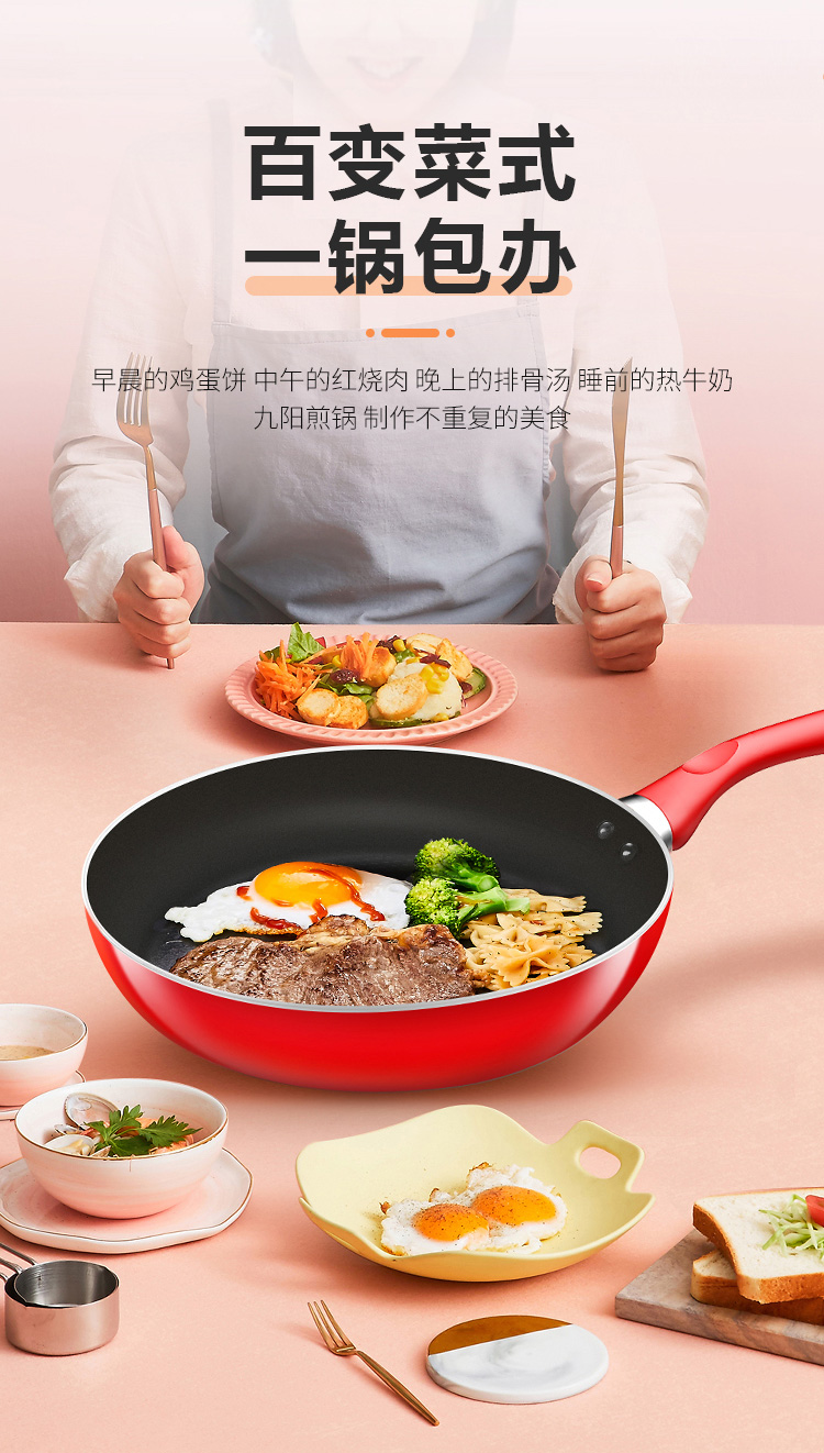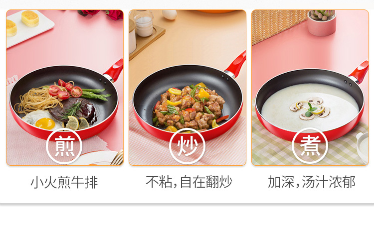 【平底小红锅】Joyoung/九阳JLW2651D煎锅平底不粘炒锅26cm无盖无木铲