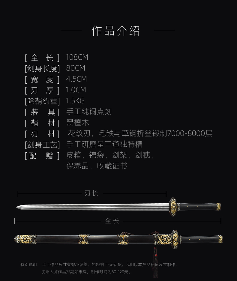 霸王剑 沈州作品 龙泉沈广隆宝剑 镇宅宝剑 沈广隆剑铺 手工传统剑收藏宝剑 sgl-2017未开刃