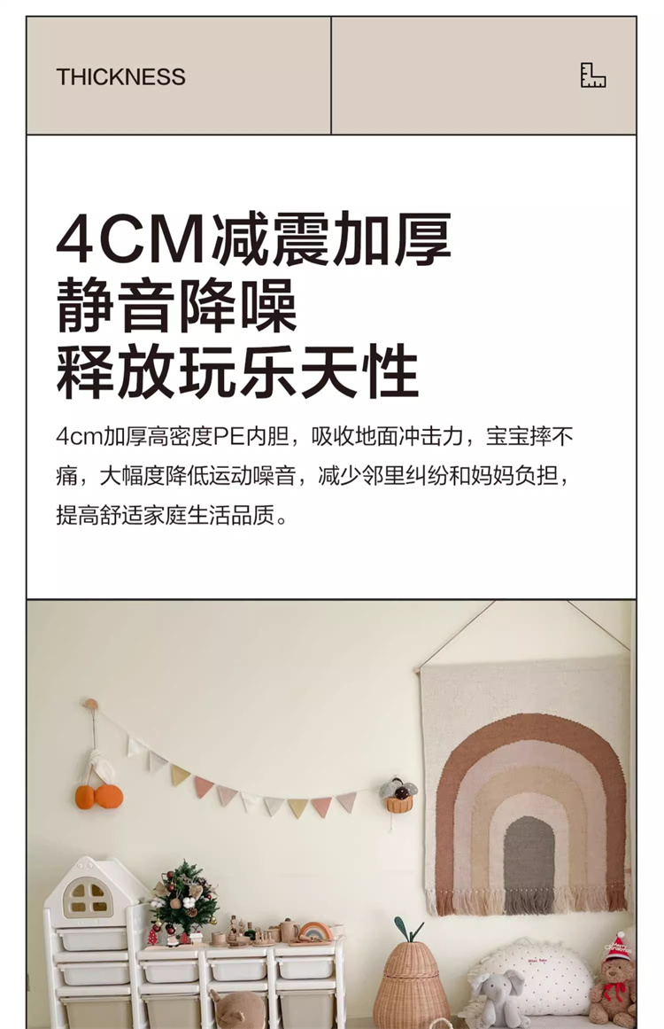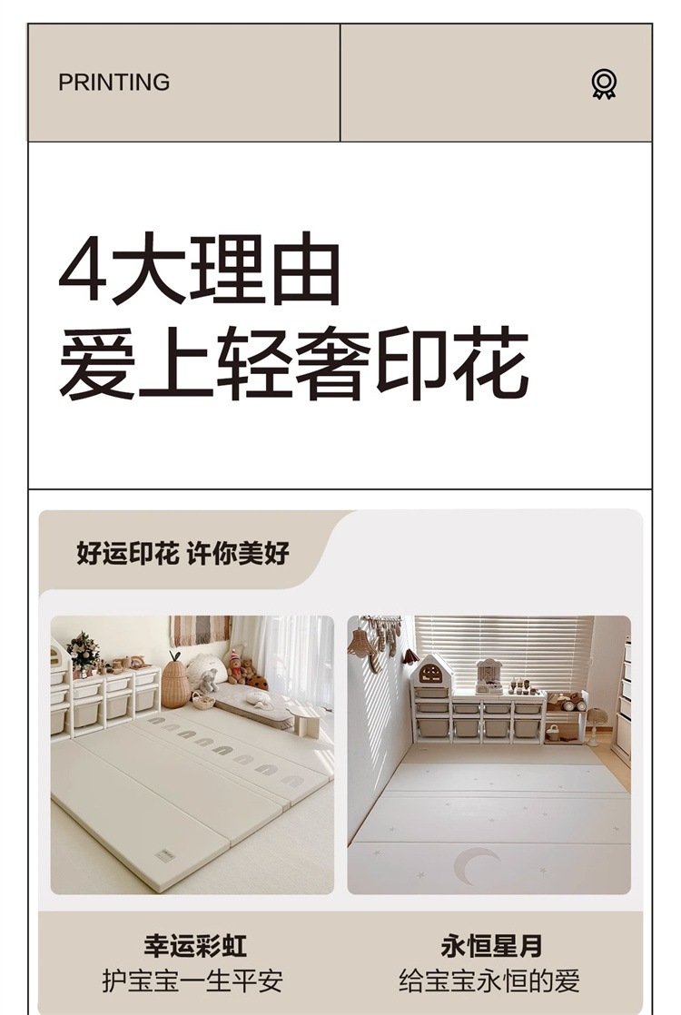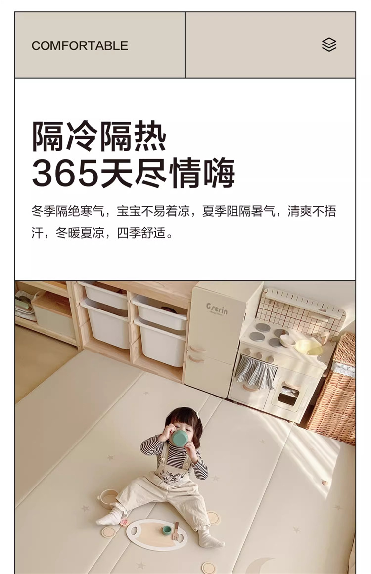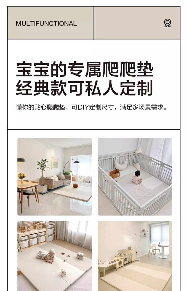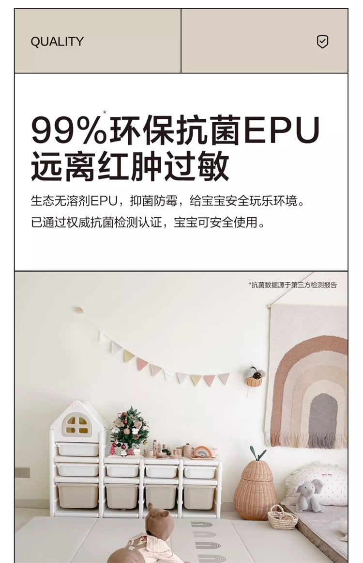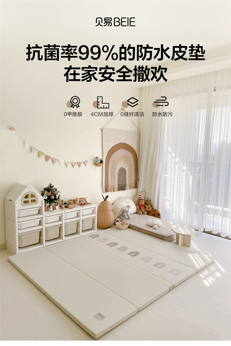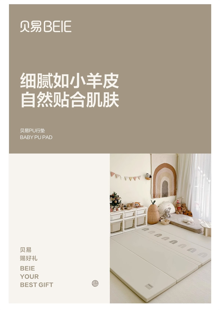 贝易爬爬垫折叠PU加厚宝宝防摔地垫儿童家用无甲醛ixpe婴儿爬行垫