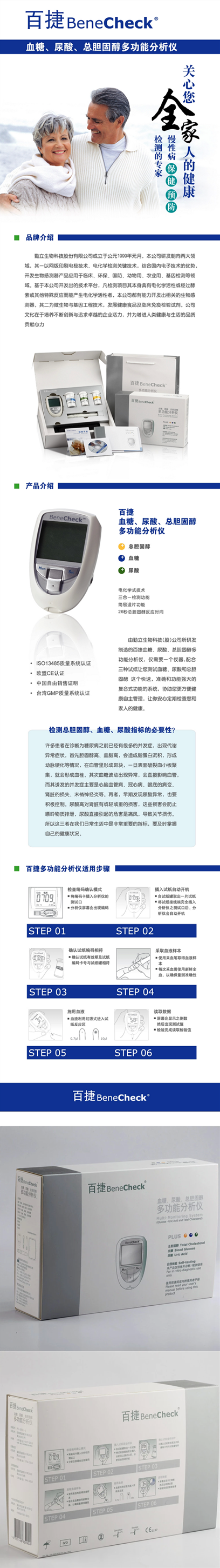 正品百捷多功能家用分析仪(血糖、尿酸、总胆固醇)包邮