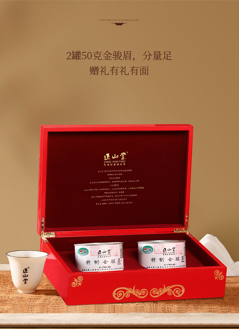 2025新茶 正山堂特制金骏眉红茶 红色木礼盒装罐装中秋年货送礼长辈100g