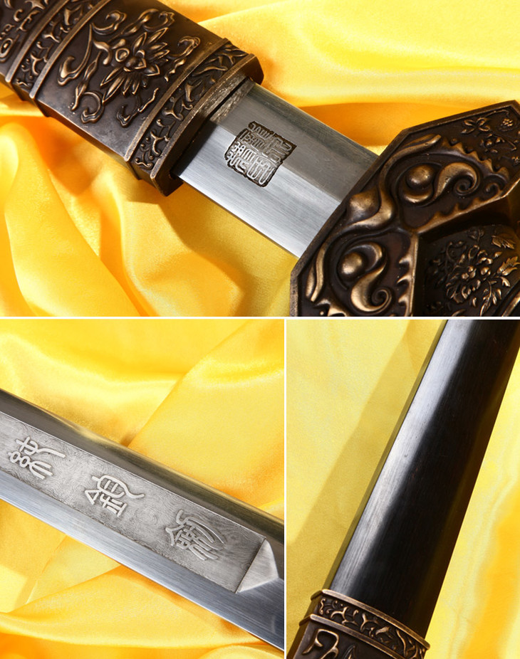 龙泉刀剑 中正剑-黑漆木碳钢中正 短刀短剑未开刃