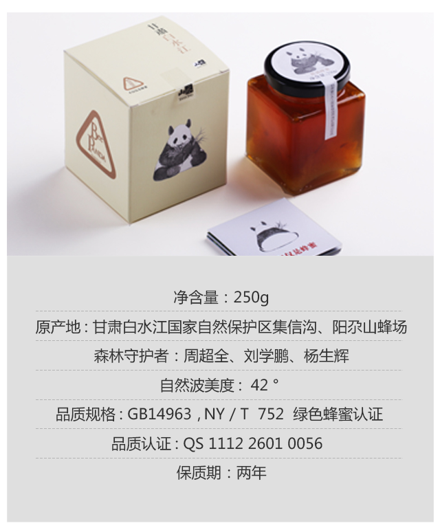 熊猫森林蜜(花甜香)250g l 大熊猫国家公园 白水江片区 l 甘肃 岷山