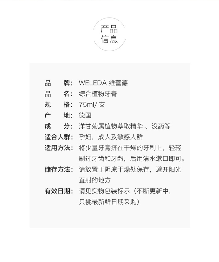 【品牌旗舰】WELEDA维蕾德 综合植物牙膏75ml 有机 无氟