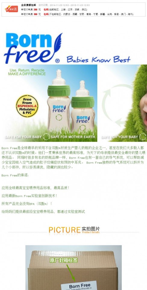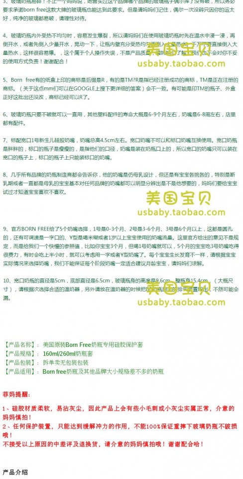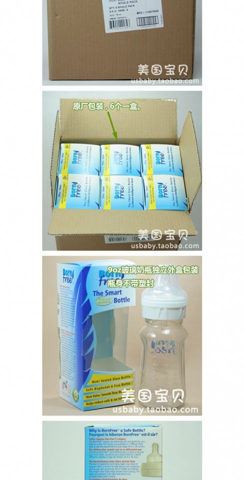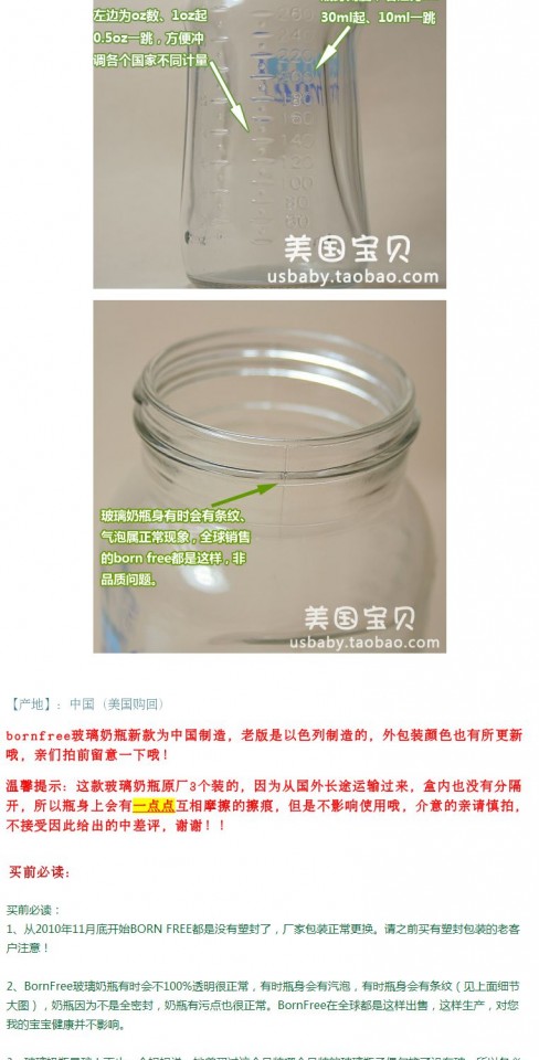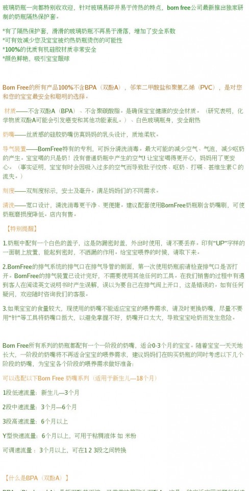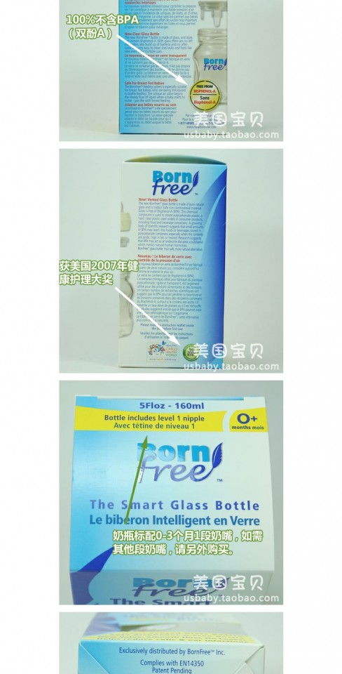 美国Born Free宽口径玻璃奶瓶160ml 260ml