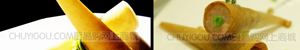 锥形不沾管长度13.3厘米,直径3.2厘米,裹上春卷皮油炸,可作出出彩的效果如下图:
