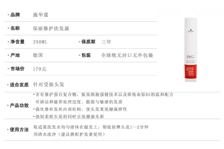 (永久下架)德国进口施华蔻 保丽修护洗发露250ml