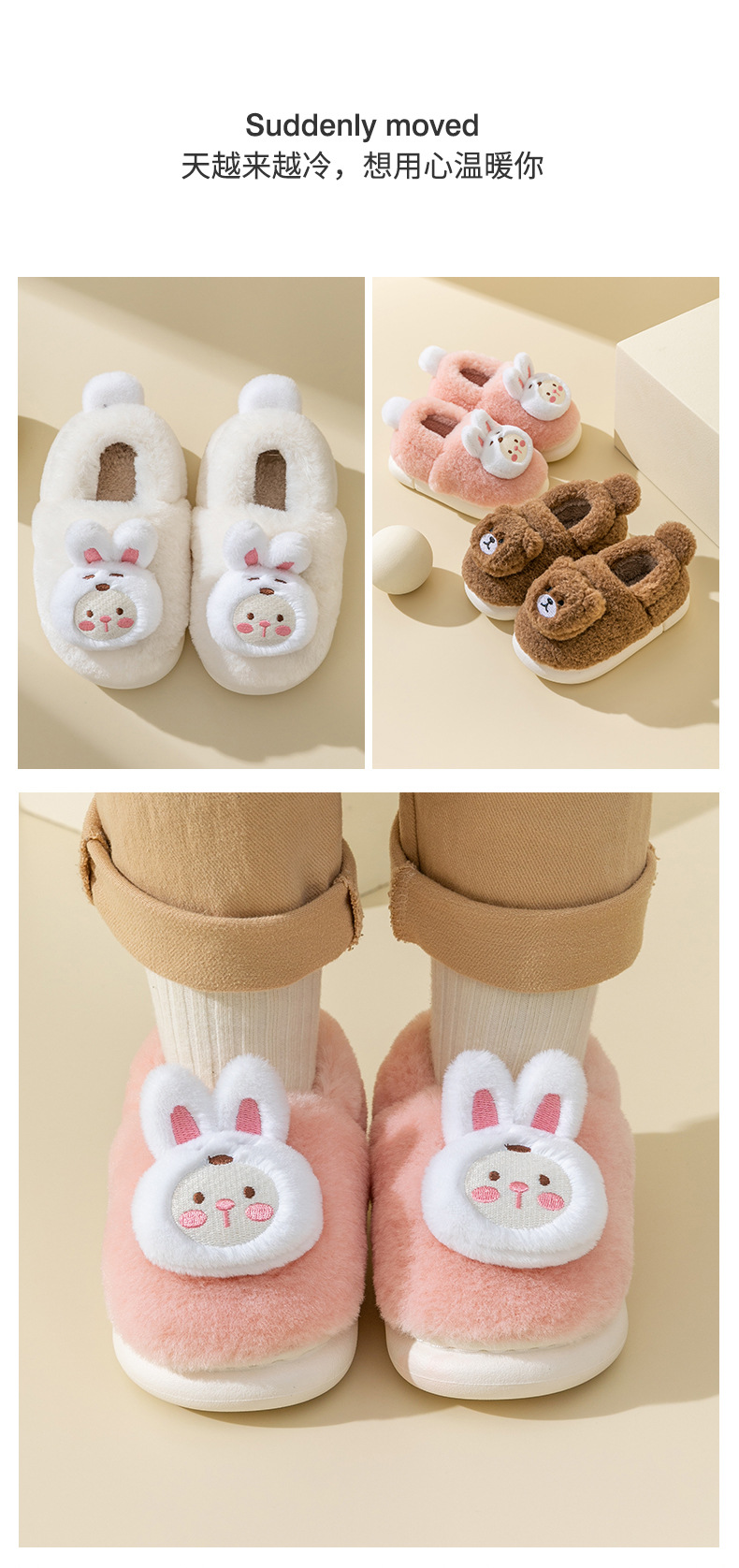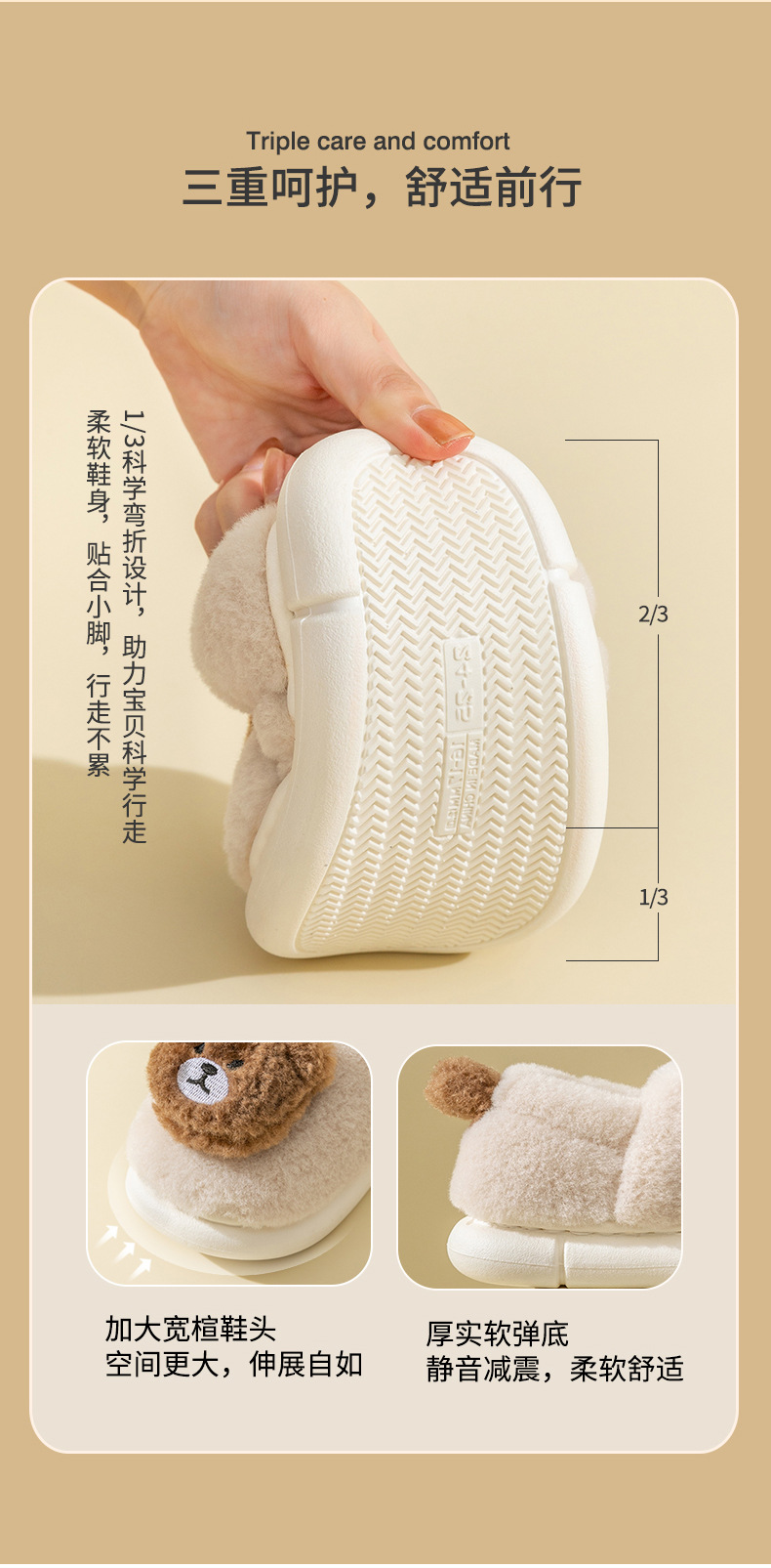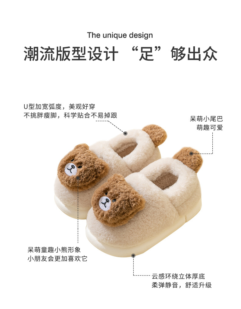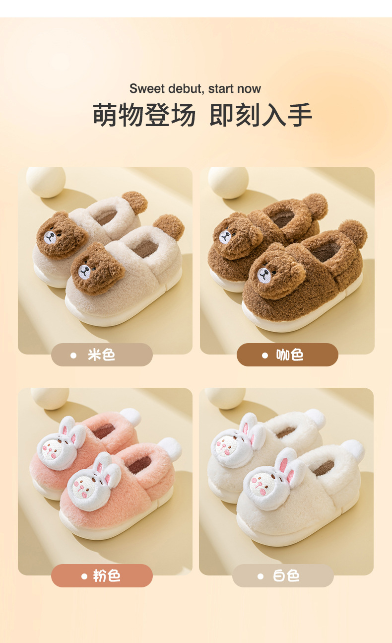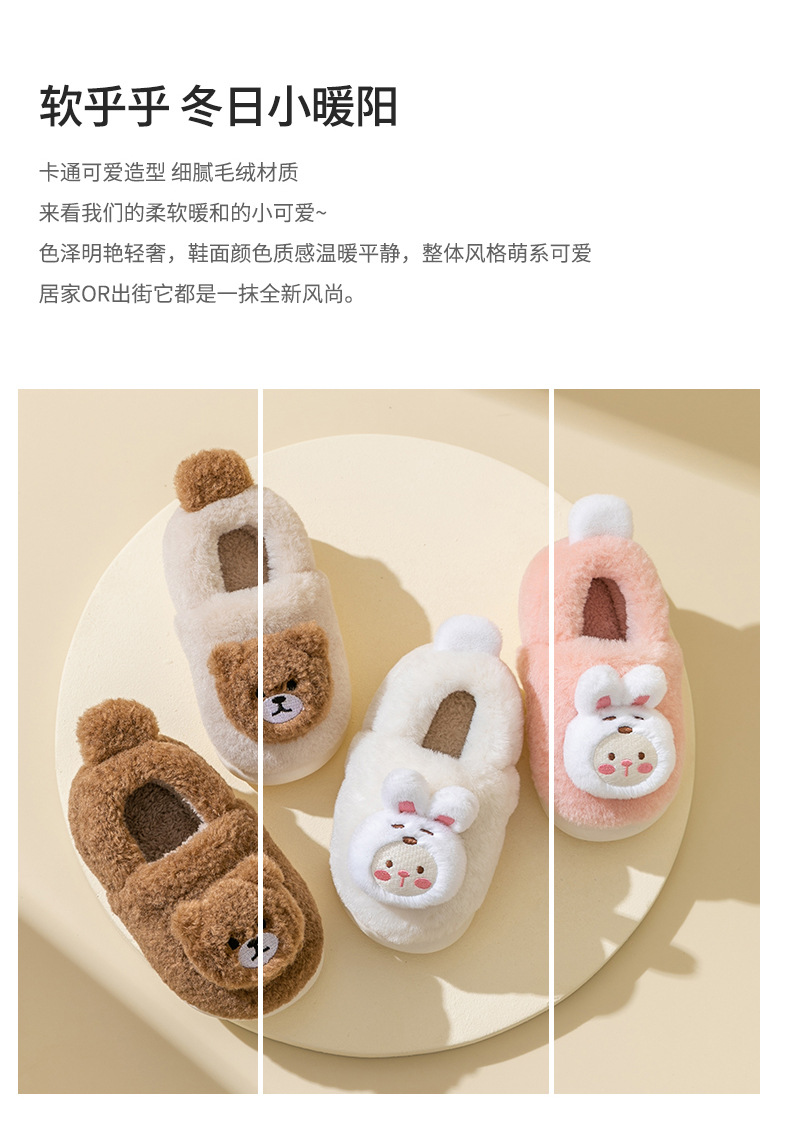 【呆萌卡通小棉鞋 毛毛包裹JIOJIO好温暖】猪爸爸儿童棉鞋男女中大童小熊保暖毛拖鞋宝宝小孩卡通毛绒棉拖鞋