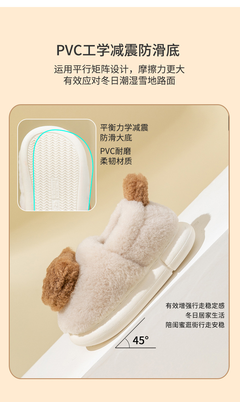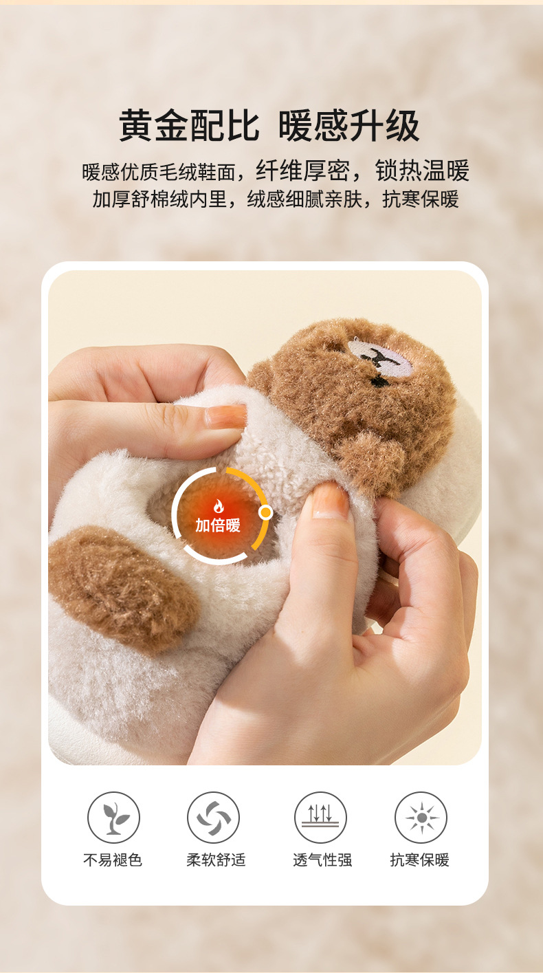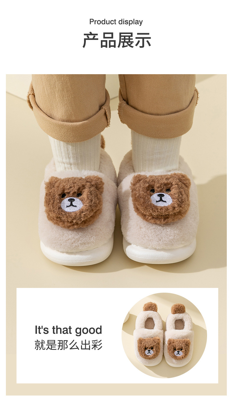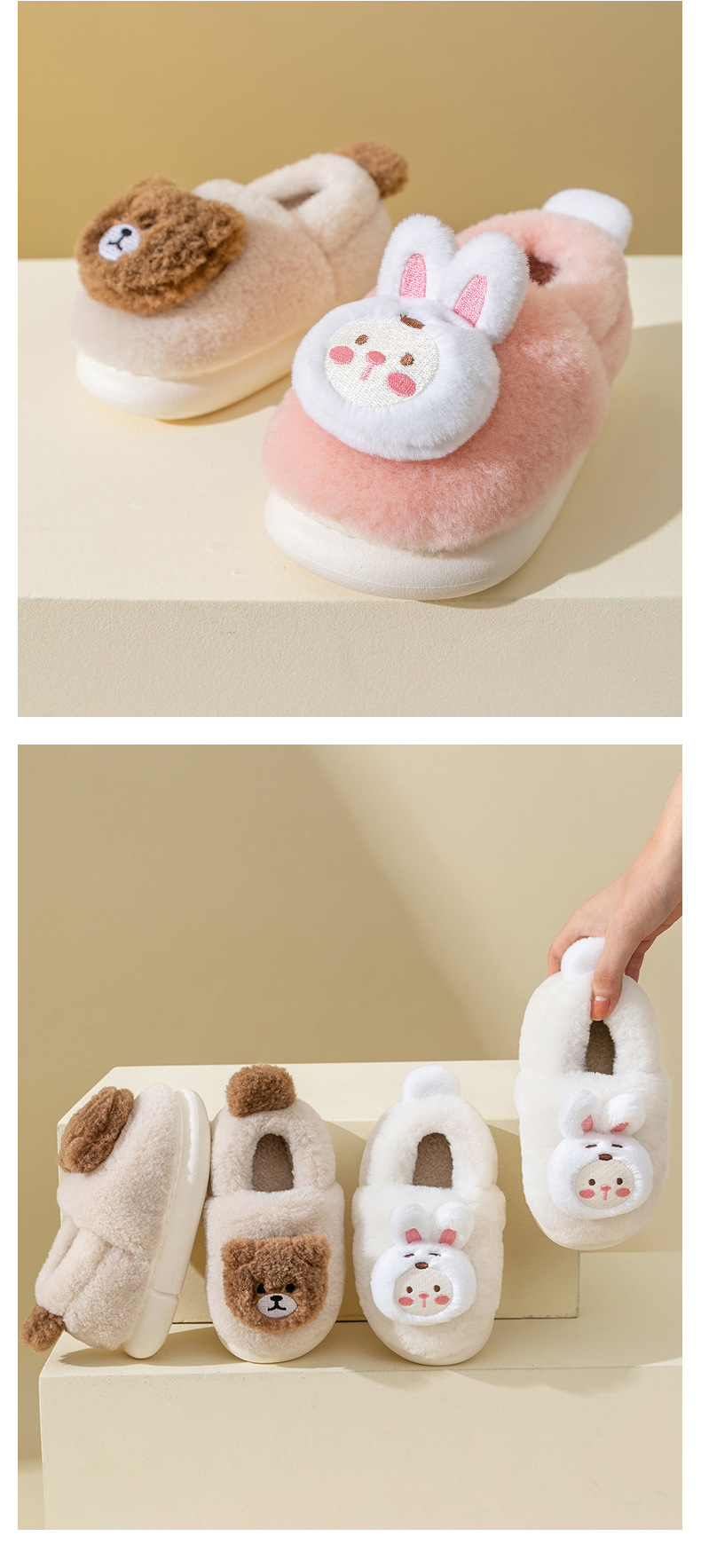 【呆萌卡通小棉鞋 毛毛包裹JIOJIO好温暖】猪爸爸儿童棉鞋男女中大童小熊保暖毛拖鞋宝宝小孩卡通毛绒棉拖鞋