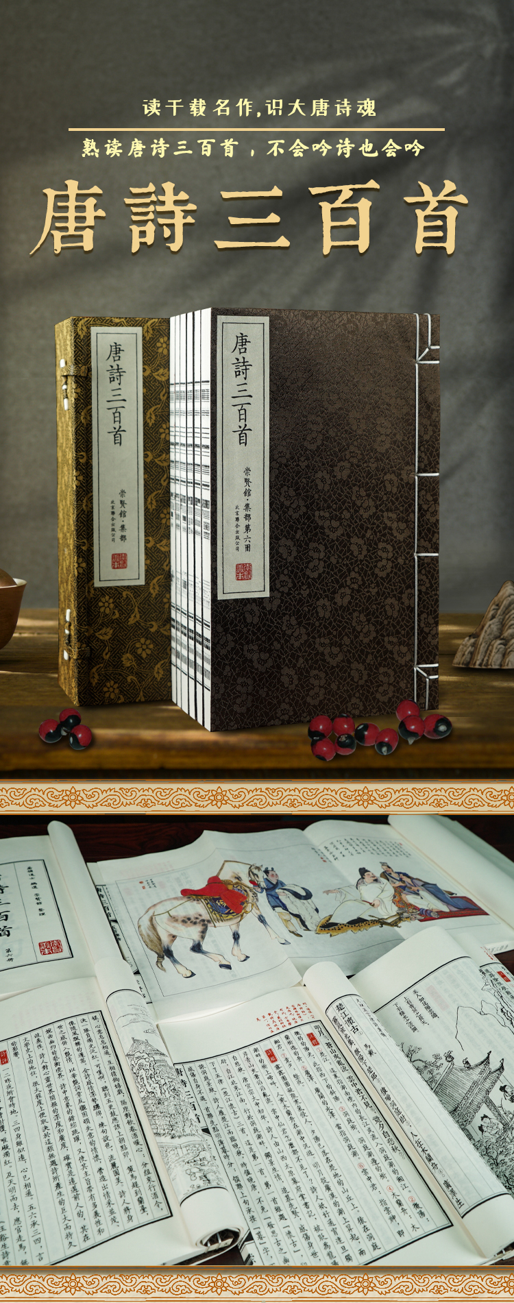 《唐诗三百首》一函六册 手工宣纸线装繁体竖排