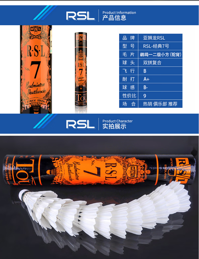 亚狮龙 RSL NO.7 Tourney 羽毛球 高性价比 亚狮龙7号球