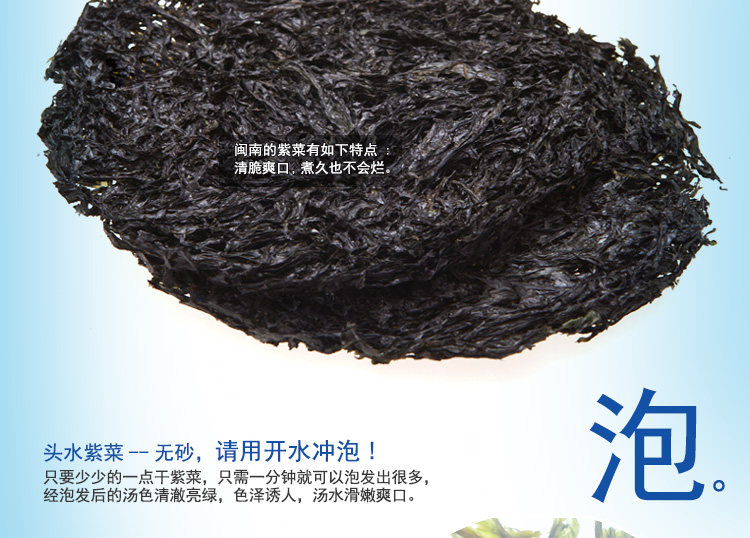 福建六鳌紫菜100g/包 细、嫩、脆、滑,免洗无沙