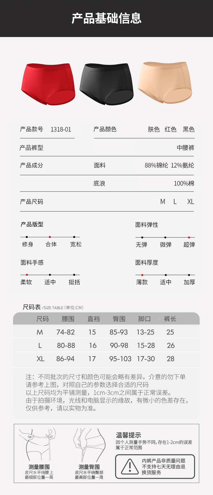 【梦之翼-配裤】舒适中腰 全棉底裆 无痕内裤 防卷边 不易变形_1318-01