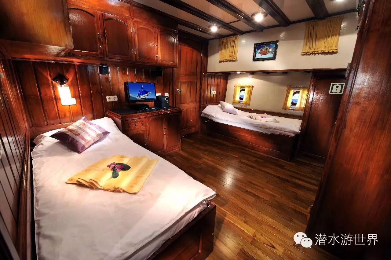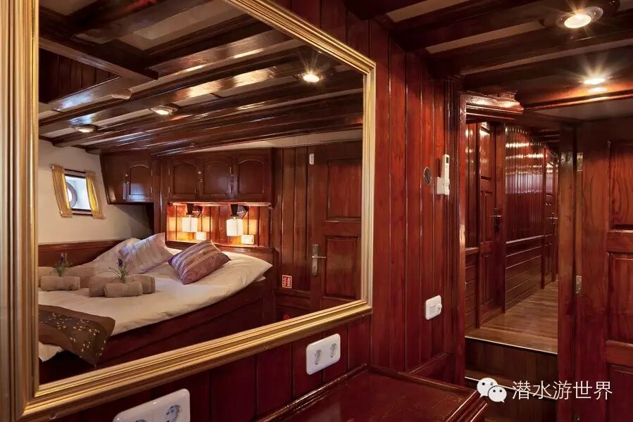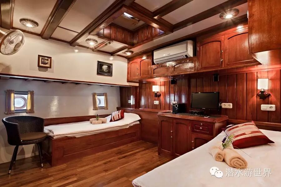 8个船舱,所有船舱均有私人卫生间、淋浴、空调、电扇、保险箱、浴巾、浴袍、吹风机