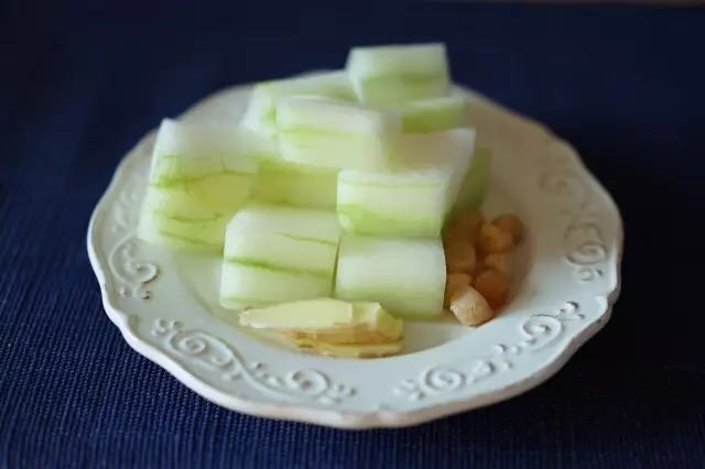 这个汤就是一段冬瓜、6颗瑶柱、一段排骨、几片姜煮出来的。