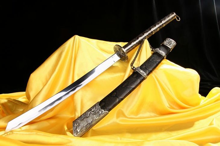 龙泉刀剑 中正剑-黑漆木碳钢中正 短刀短剑未开刃