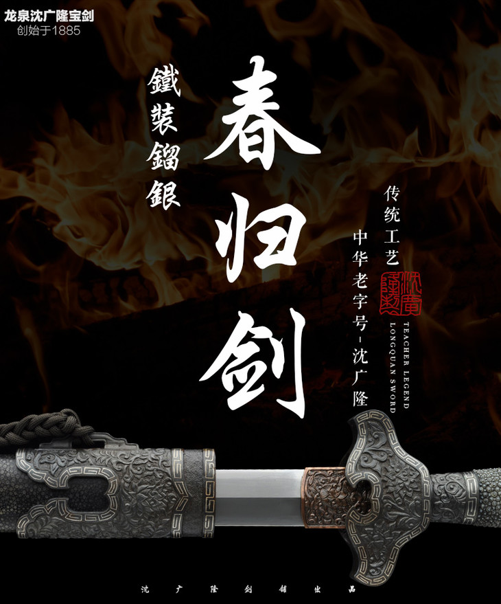 - 龙泉沈广隆剑舖创始于1885年(清光绪)位于浙江省龙泉市,是当地唯一一家“子承父业”一脉相承的中华老字号宝剑生产企业,是国家级非物质文化遗产龙泉宝剑项目保护单位,并以“天下第一剑”闻名于海内外....